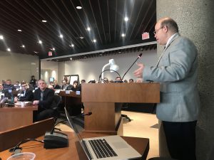 Convener Turner sharing the Innovative Business Models Working Group presentation with the Strategic Council Assembly on Thursday, December 7, 2017. Photo provided by Bruce D. Turner, AIA