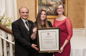 Service Award Chair Robert Cozzarelli, AIA, and AIA NJ President Verity Frizzell, AIA present Kimberly Bunn, AIA, the Distinguished Service Award. Photo by Hollander Photographic Services