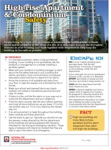 If you live in a high rise apartment or condominium, it is important to check and be sure that the property manager is maintaining the safety of the building and it’s inhabitants as well as following the usual safety guidelines for any residence. Read, follow and share these tips from the National Fire Prevention Association.