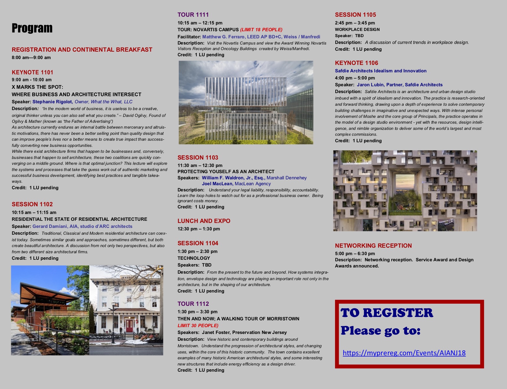 Registration open for the 2018 AIANJ Design ConferenceTwo great tour options, space is limited space sign up early: