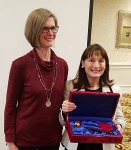 2018 President Verity Frizzell, FAIA, presenting the gavel to 2019 President Judith Donnelly, AIA