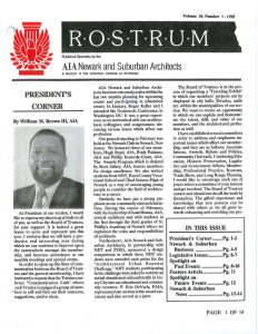 “I have had the pleasure of knowing William M. Brown, III, AIA, for the last 40 years.  Bill is one of the finest gentlemen I have ever had the privilege of knowing and I’m proud to call him my friend.   When I first met Bill, he spoke only kind words of encouragement about being an architect and of the profession.  It was from that moment that our friendship began.  But, it was during the spring of 1994, when I was attending the AIA Newark & Suburban Trade Show, that Bill approached me and asked me to attend an AIA Newark & Suburban Section Board meeting.  It was through Bill’s guidance and friendship that I found myself involved with AIA and volunteering my time to the profession, which I never regretted.  More than anything I learned from Bill’s leadership by how he conducted himself and how respectful he was with all AIA members.  Bill has shown his fellow architects his leadership abilities, as he served throughout the years and ultimately as AIA New Jersey President in 2002.  Whatever AIA office, committee chair, or task force Bill has been involved with over the years he has handled it with respect, success, and attention to detail primarily because he takes the time to care.