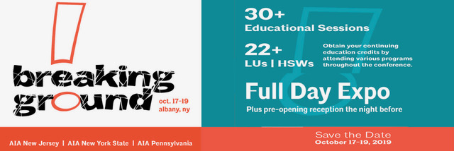 The 2019 Tri-State Conference: Breaking Ground! supports this foundation. A collaboration between AIA New Jersey, AIA New York State, and AIA Pennsylvania, Breaking Ground! was created to share ideas and technologies that are redefining our profession and industry.