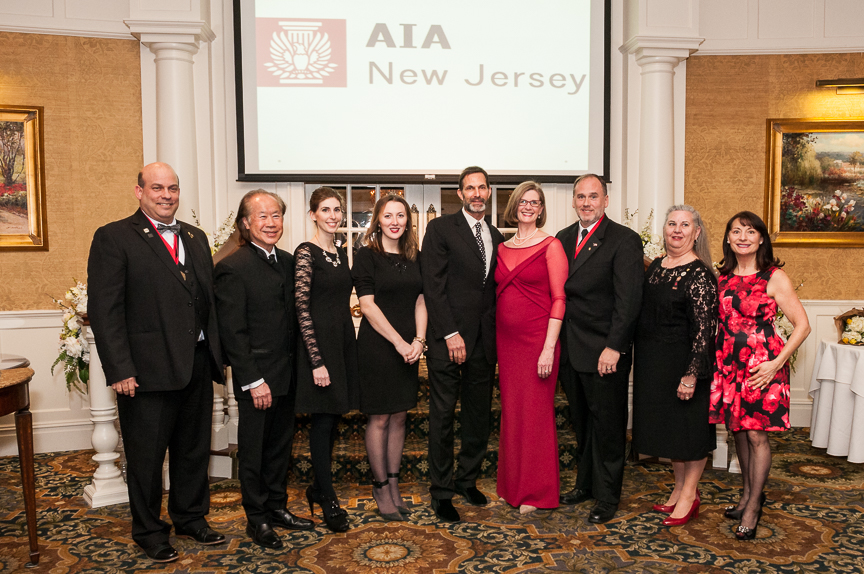 AIA NJ Past Regional Director Robert Cozzarelli and 2015 AIA-NJ President Kimberly Bunn with Architects League officers.c.2015 Dee Portera Photography