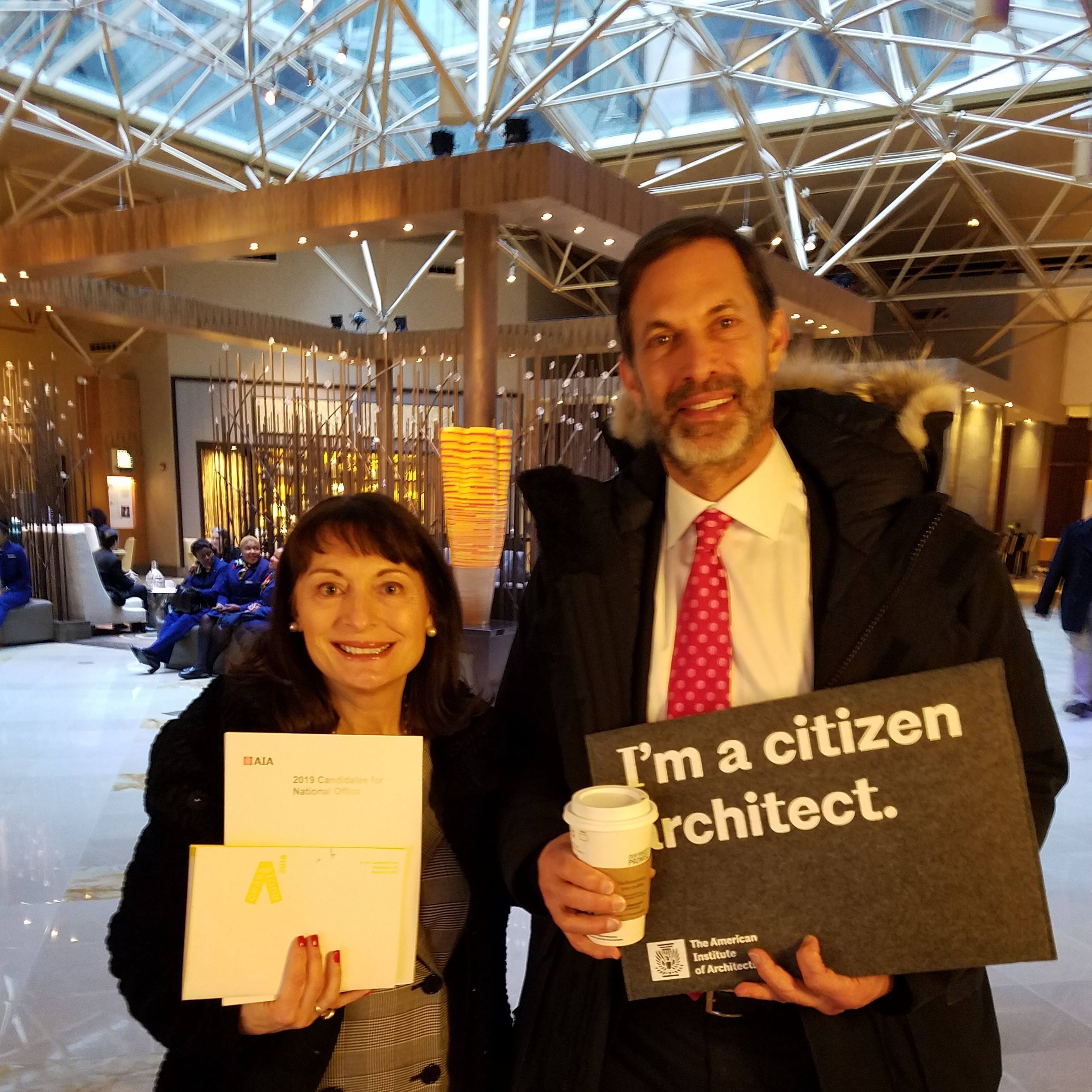President Judy Donnelly, AIA, and President Elect Steve Lazarus, AIA, at Grassroots 2019