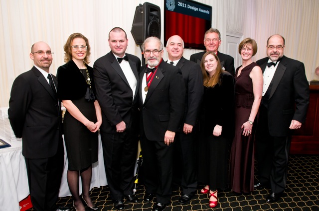 L-R, Bruce Turner, AIA; Joshua Zinder, AIA; Megan Pritt, AIA; John Cwikla, AIA; Judy Donnelly, AIA; Steve Lazarus, AIA; Vin Minkler, AIA; Verity Frizzell, FAIA and Marvin Clawson, AIA