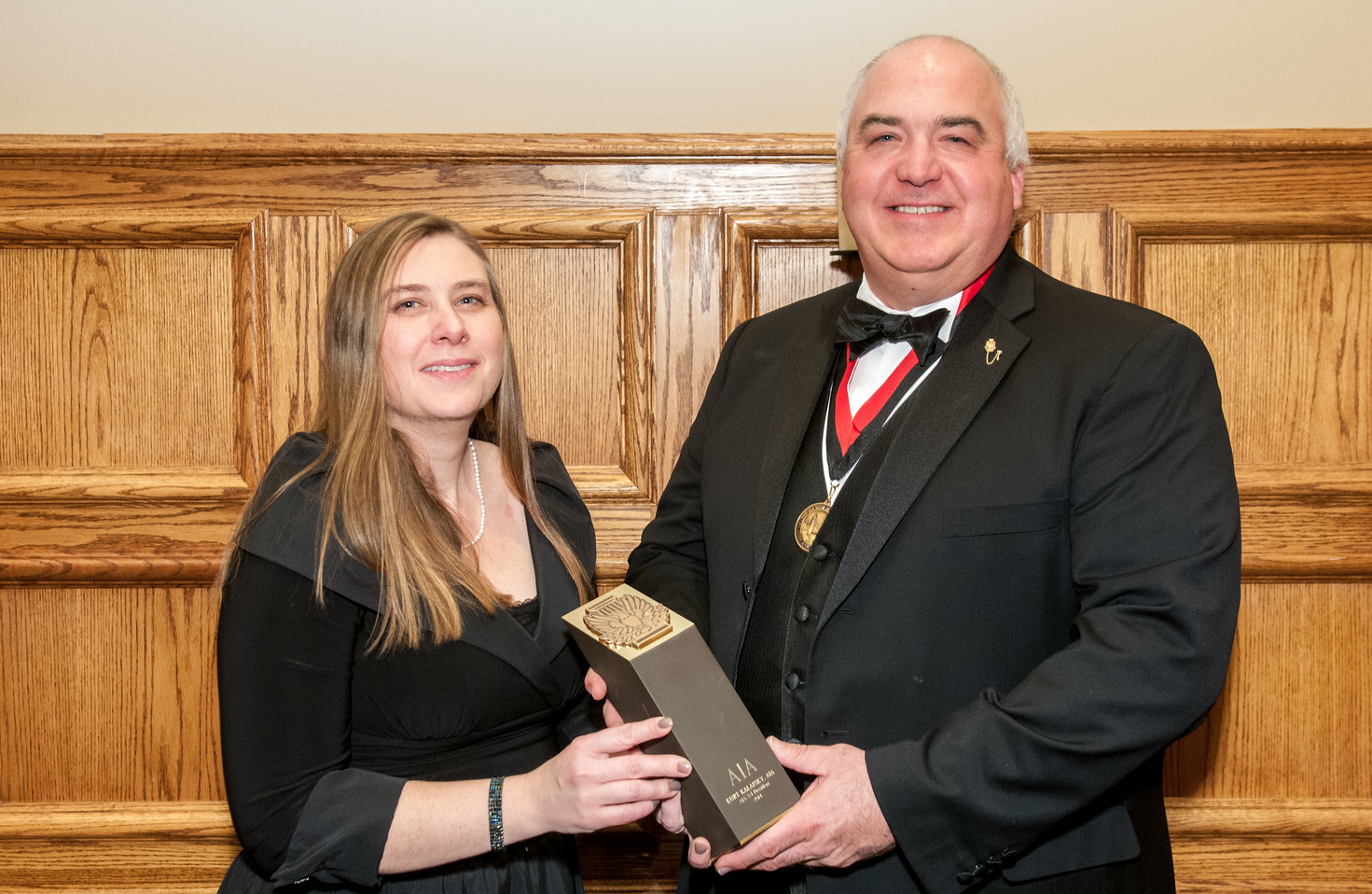 2015 President Kimberly Bunn, AIA, presents 2015 President Kurt Kalafsky,, AIA, his Gavel