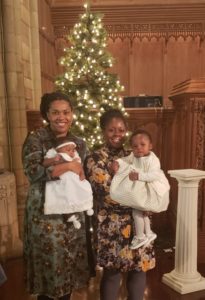 Willia holding her daughter, Zariyah, and her wife, Nicola, holding daughter, Nailah, at Zariyah’s Christening