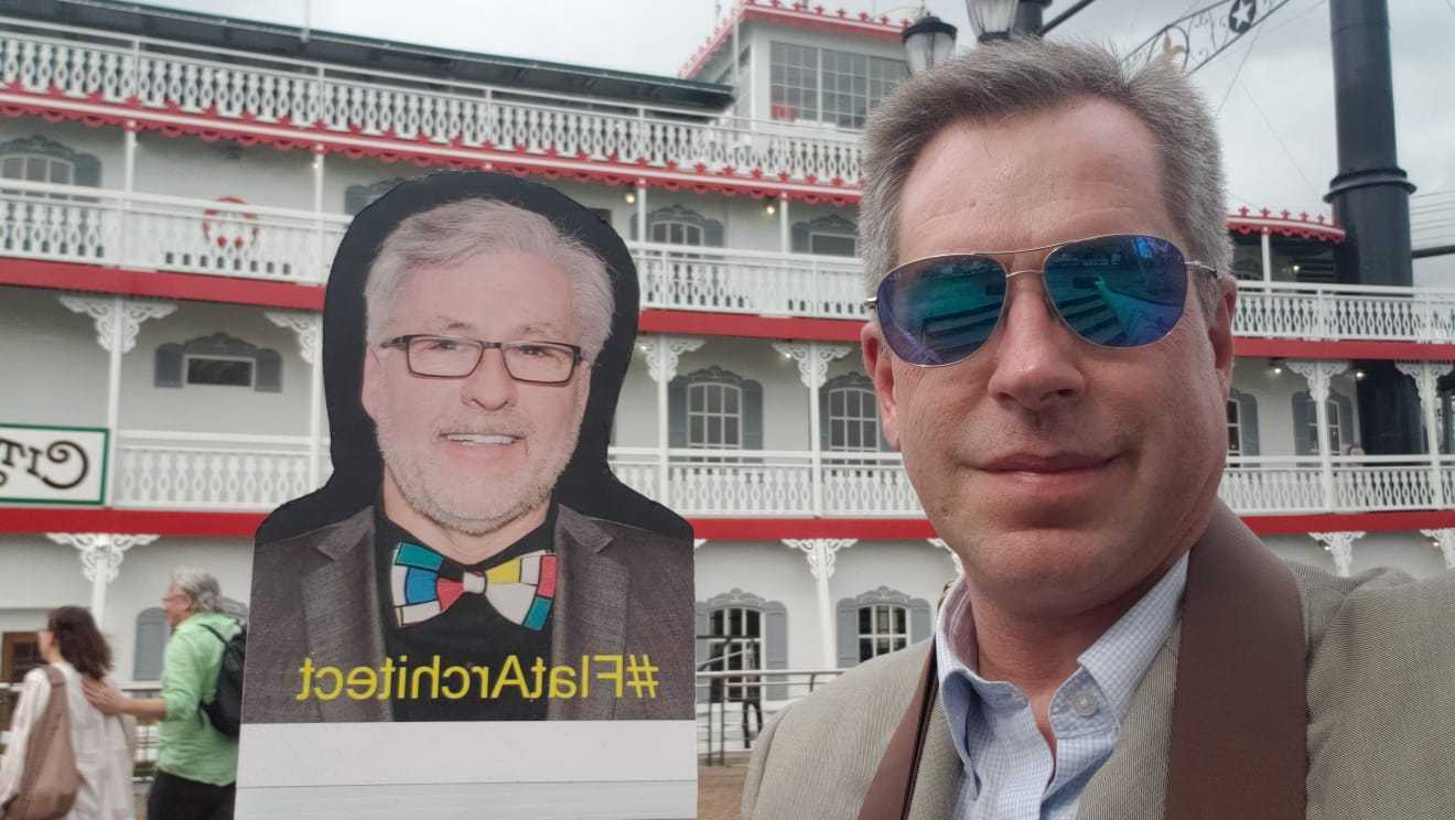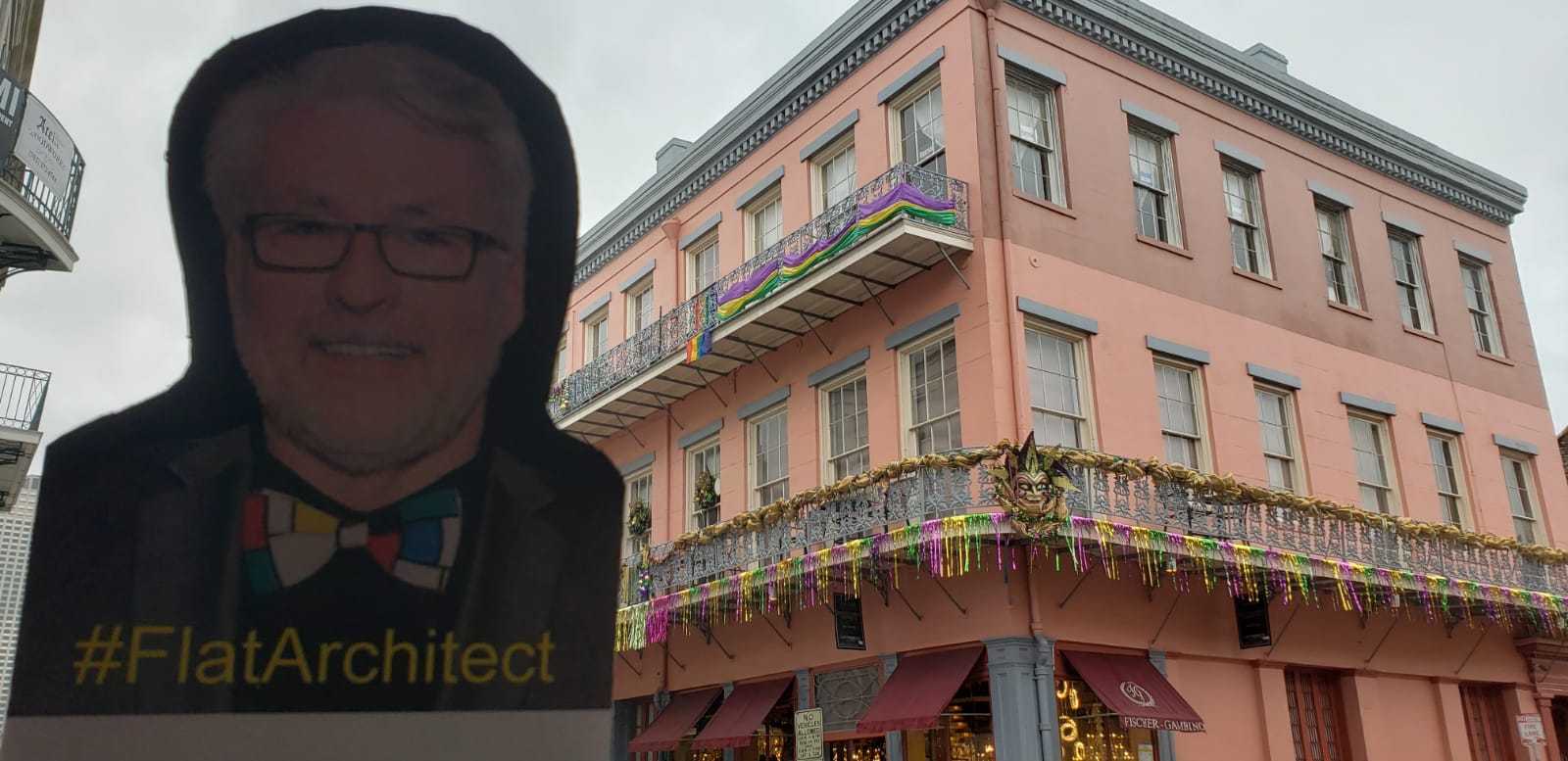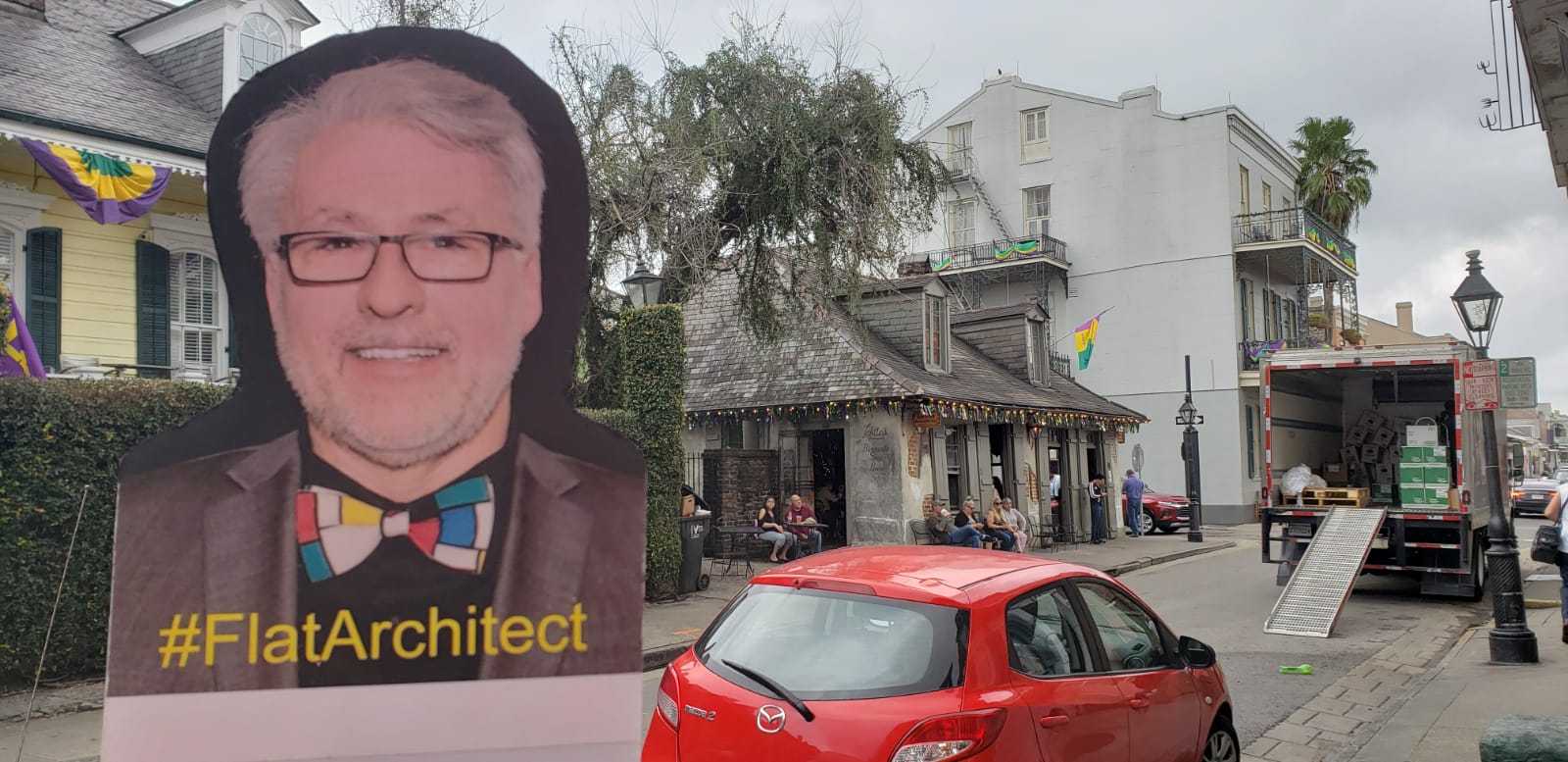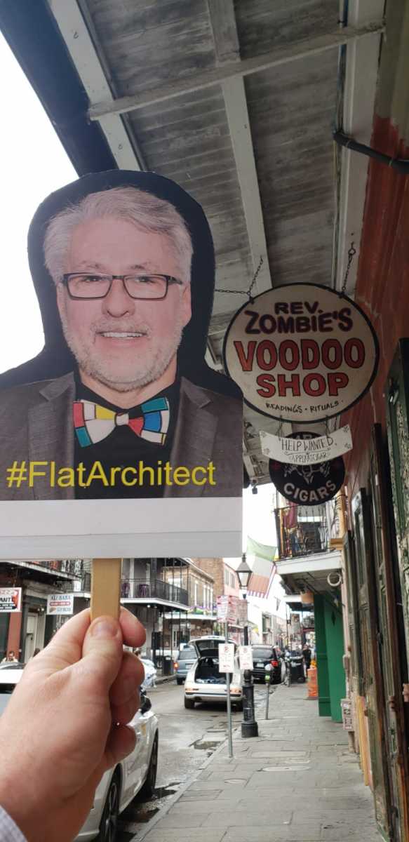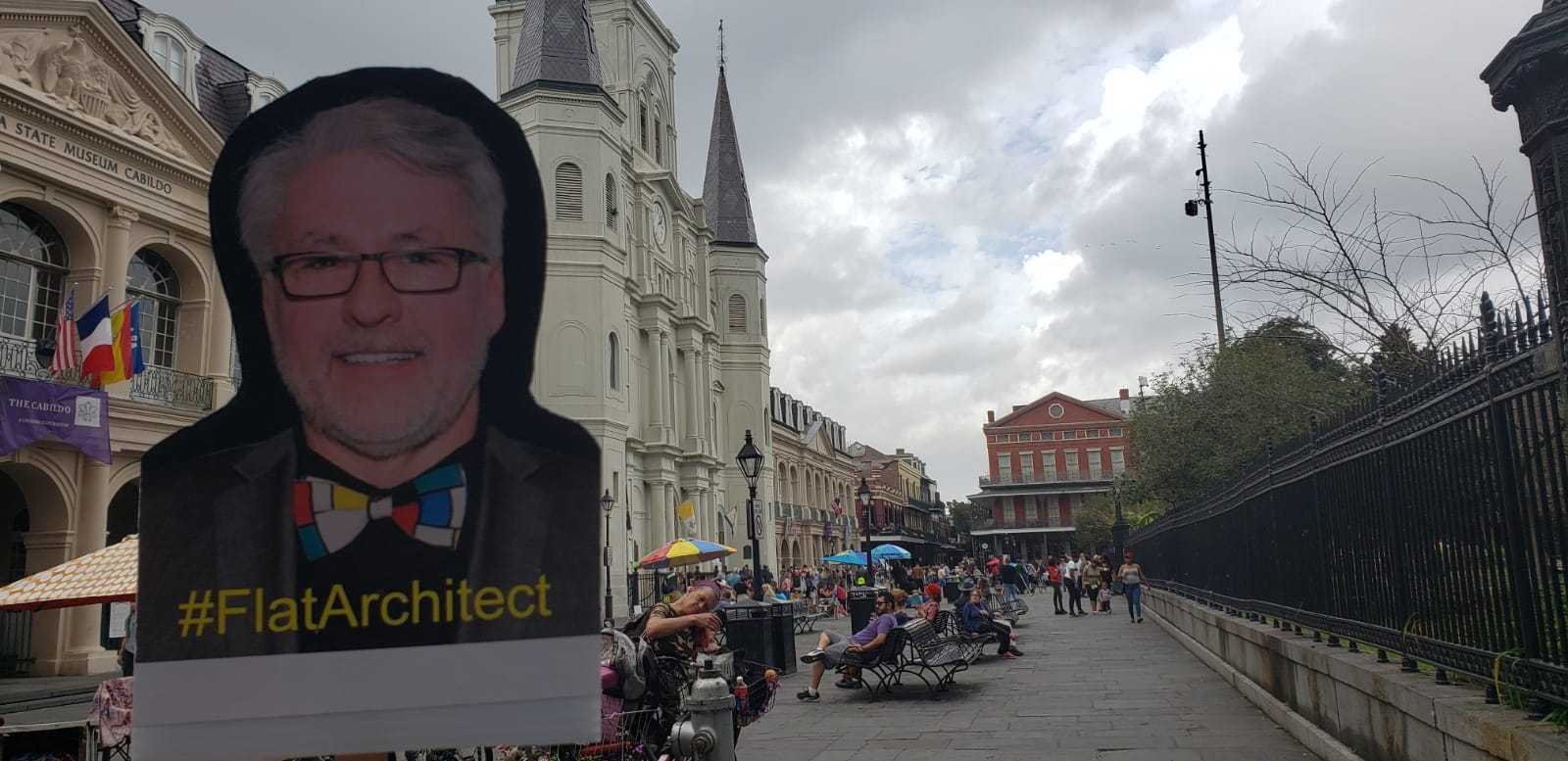 Reading Time: 4 minutesAIA New Jersey Public Awareness Committee Co-Chair and Online Influencer, William Martin, AIA, partnered up with AIA New Jersey CRAN Co-Chair and Grassroots attendee, Brian Penschow, AIA, and AIA Jersey Shore President to create a social media frenzy around AIA National’s Grassroots convention in February 2020. Bill was not scheduled at attend Grassroots, but sent his #FlatArchitect version down to NOLA as Brian and Marissa’s travel companion.
