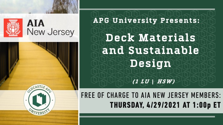 Join experts from Oldcastle APG as they summarize green building benefits of composite decking and creating safe and healthy outdoor spaces per today’s code standards, as well as best practices for moisture resistance, slip resistance, thermal expansion, hardness and weight, load capacity and more.