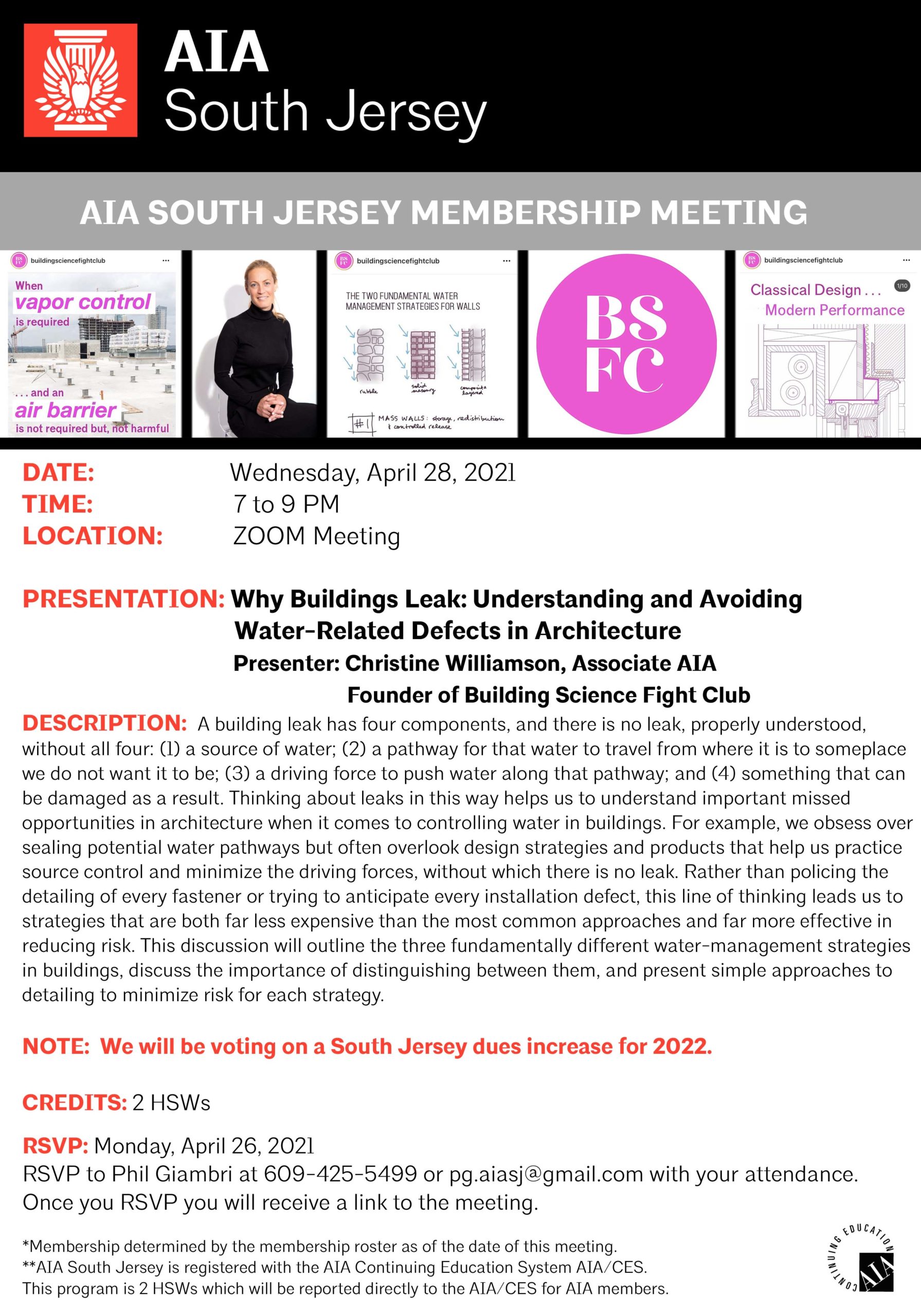 By AIANJ | Posted in AIA South Jersey, AIA-NJ News, Continuing Ed, NJ Architect Newsletter | Tagged: #AIASJ, Christine Williamson | Comments (0)