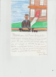 It is remarkable how the students can become so fascinated in the discussion and can come back to you with some intriguing and funny questions. This makes the interaction fun for both Bill and the students but the dialogue inspires them to think beyond their current circumstances and gives them hope and a belief that they can dream and achieve whatever they set their minds to. The students at Dr. John Howard Jr. School shared precious “Thank You” notes which Bill still keeps and serves as an inspiration to mentor and serve! You never know who you may reach or who will be the next Architect but that is not your job! We can’t wait and say I will mentor students when I have my act together, because it will never happen. Go as you are, use what you know, and make a difference in the lives of others for your blessing is in the going! We as Architects have to just go and plant the seed, be not concerned about the results but to share our experiences in a genuine way, and having the faith that one-day future Architects will emerge!