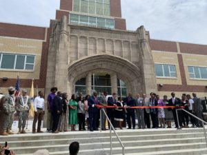 Reverence for the original 1916 Camden High School, demolished in 2017, and its iconic role in the neighborhood’s history, growth, and presence as an anchor of the city, was a prominent theme through the design and reconstruction of the replacement school. DIG helped integrate significant elements of the former historic high school building’s original construction into the fabric of the new High School—establishing a legacy site of both the history and future of Camden. Such iconic pieces as the arch from the former school’s main entrance and others were carefully installed throughout the campus and serve as interpretive exhibits to educate and celebrate the history of Camden High School as a community centerpiece.