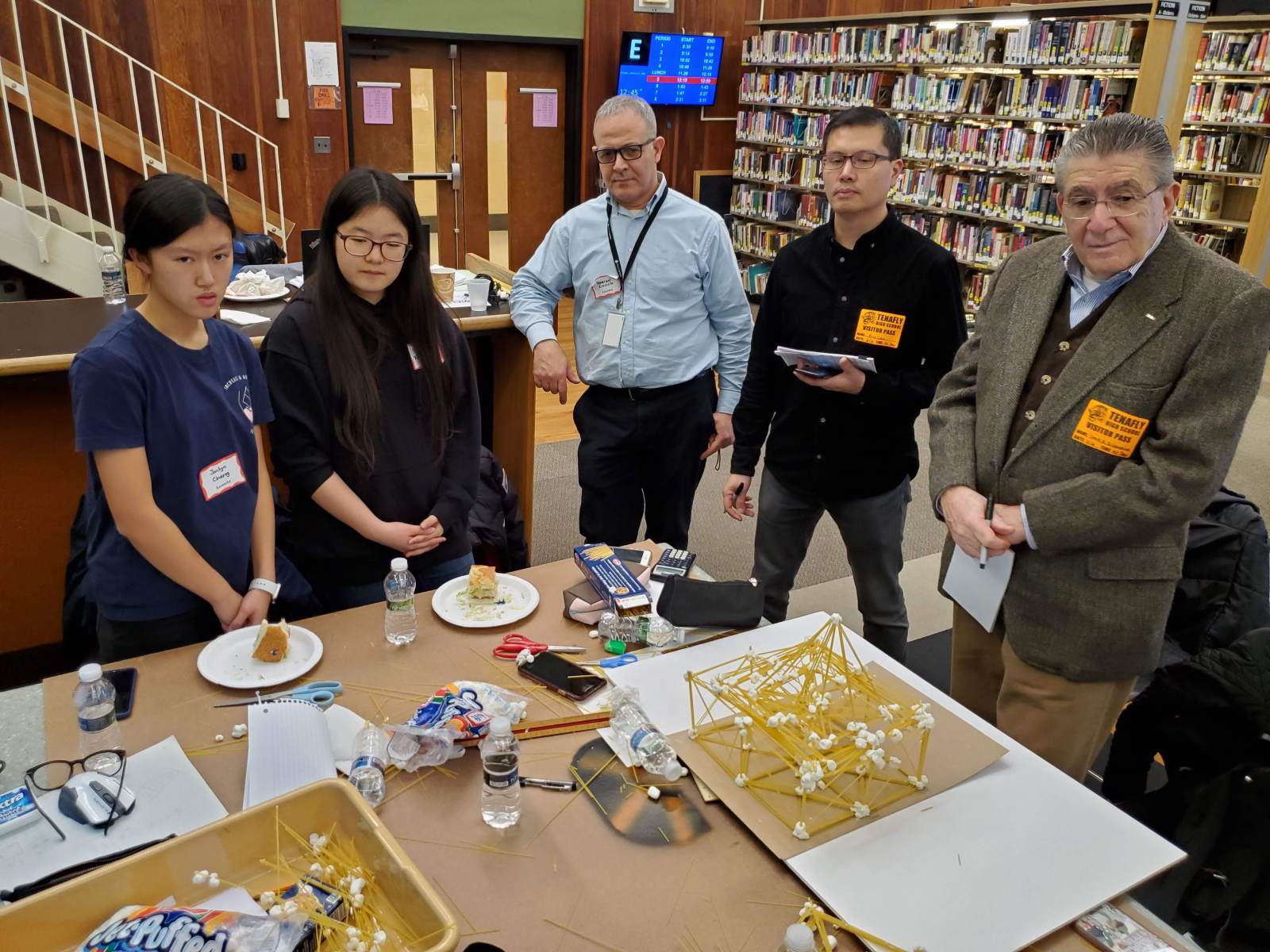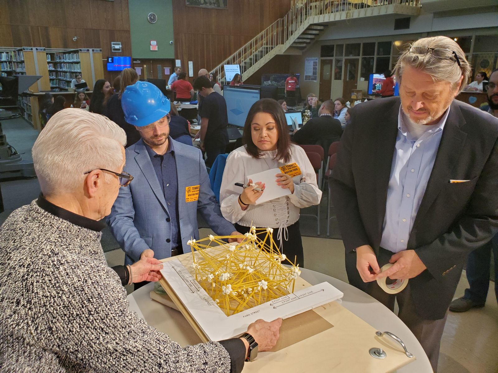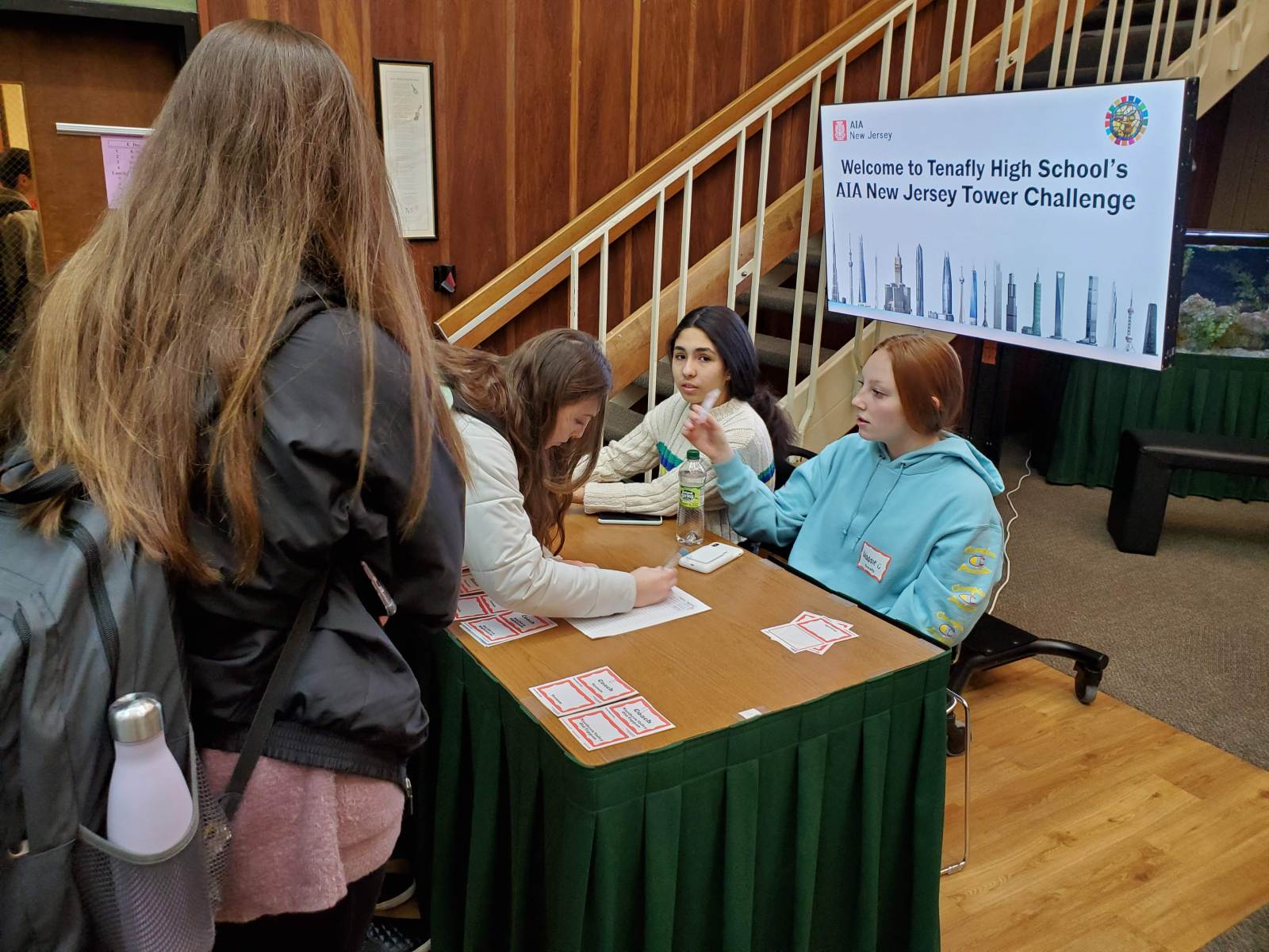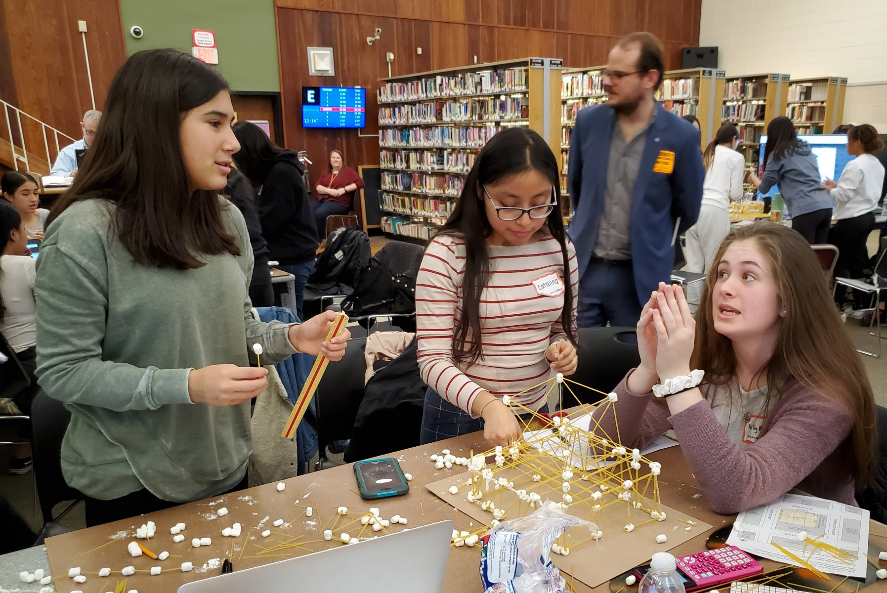 On February 6, 2020, Tenafly High School invited 96 young women from 12 NJ high schools to compete in the AIA NJ Women’s STEAM Tower Challenge. The project was designed by Joseph David, AIA, and co-chaired by Stacey Ruhle Kliesch, AIA, both past presidents of The Architects League of Northern New Jersey. Tenafly High School Teacher of Technology Education, Ghania Layachi, conceived the idea for the all-women STEAM event, arranged the logistics of the entire event and brought all of the participants together. According to Ms. Layacha, “The lack of girls in engineering and architecture motivated the officers of Tenafly Chapter of Society of Women Engineers(SWEnext) to plan this competition.”