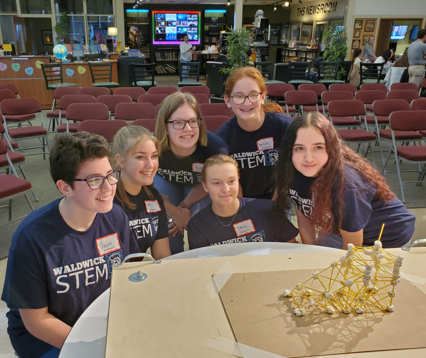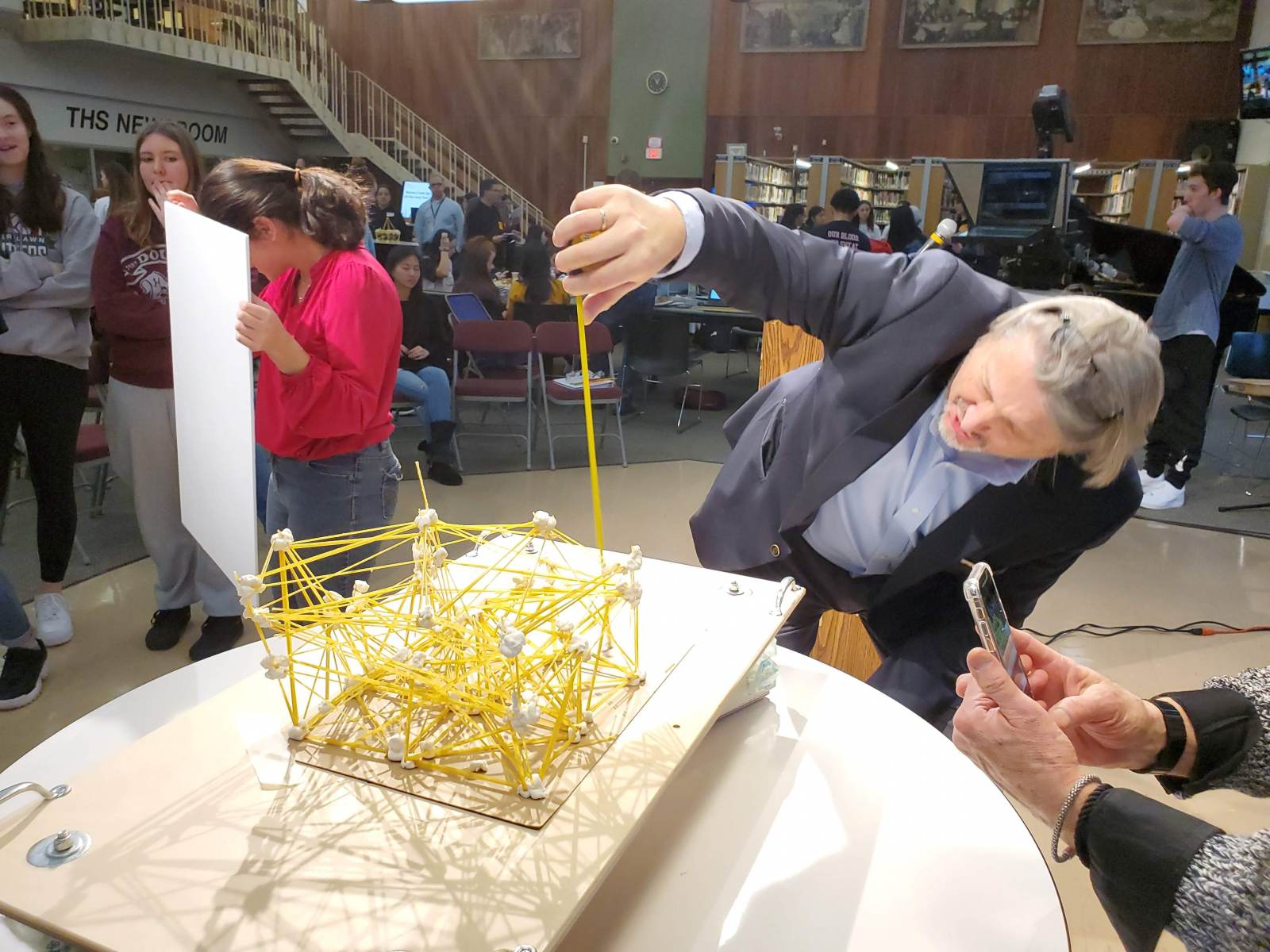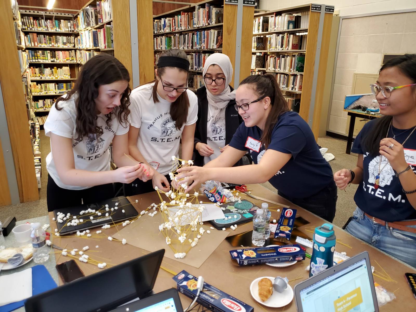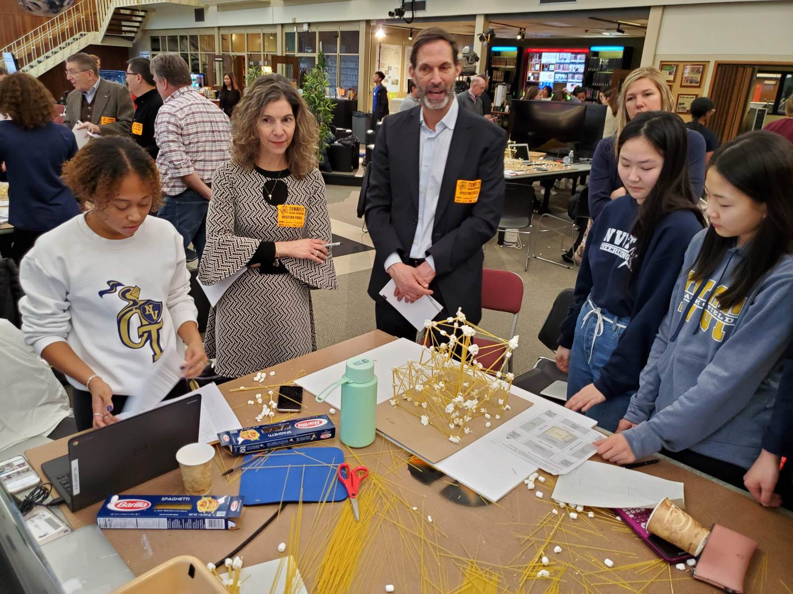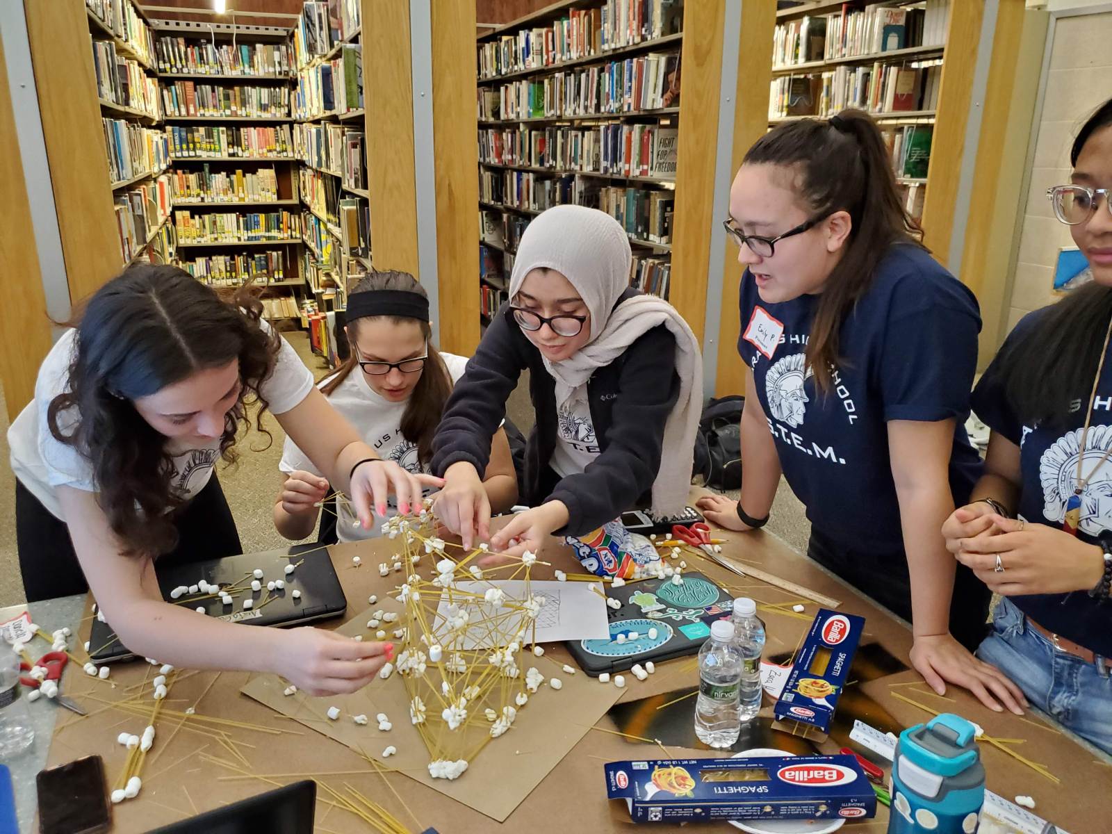 On February 6, 2020, Tenafly High School invited 96 young women from 12 NJ high schools to compete in the AIA NJ Women’s STEAM Tower Challenge. The project was designed by Joseph David, AIA, and co-chaired by Stacey Ruhle Kliesch, AIA, both past presidents of The Architects League of Northern New Jersey. Tenafly High School Teacher of Technology Education, Ghania Layachi, conceived the idea for the all-women STEAM event, arranged the logistics of the entire event and brought all of the participants together. According to Ms. Layacha, “The lack of girls in engineering and architecture motivated the officers of Tenafly Chapter of Society of Women Engineers(SWEnext) to plan this competition.”