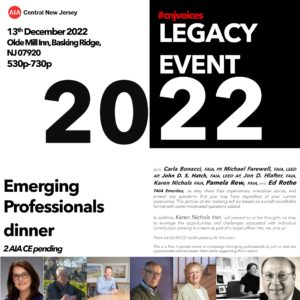 AIA Central New Jersey is hosting their year-end legacy dinner focused on its elevated Fellows (Central NJ) sharing professional life experiences with Emerging Professionals.