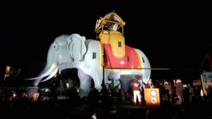 On Wednesday, December 28th, 2022, AIA New Jersey Past President Stacey Ruhle Kliesch, AIA, attended the “unveiling” of Lucy The Elephant in Margate City, NJ, after a $2.4 Million restoration project that lasted 15 months. Richard Helfant, executive director and CEO of Lucy The Elephant, welcomed Kliesch to participate in the 30-minute ceremony, which concluded with a light show that served to reveal the preserved pachyderm in all her glory.