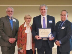 Left to Right: Architect and Master of Ceremonies, William J. Martin, AIA; Cynthia Forster, Director of Division of Cultural and Historic Affairs; Architect Brian J. Callahan, AIA, (award recipient) and Jeffrey J. Lahullier, Mayor of East Rutherford and Historic Preservation Board Member. Photo by Jackie Martin.
