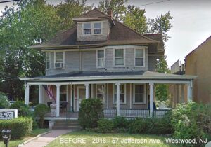Built in the early part of the 20th century, the home located at 57 Jefferson Avenue is a colonial revival style four-square home, located in Westwood’s Historic District. Designation of this single-family home as part of the Jefferson Avenue Historic District was made in 2011. The district earned this designation for its association with the expansion of Westwood from a commercial community to a commuter railroad suburb.