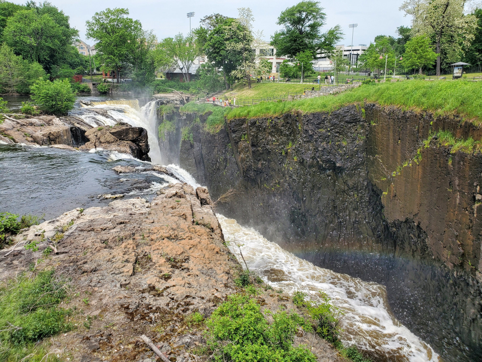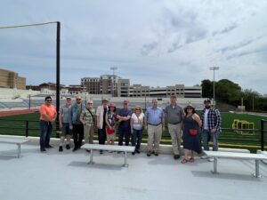 Next, the group traveled to Great Falls National Park for lunch overlooking the falls followed by a meet-up with a Hinchliffe cheerleader for a bit of her history at the stadium in the 1960s and a ranger-led tour. The Great Falls is 77 feet high and 260 feet wide. More than 2 billion gallons of water can drop over daily. It is the 2nd largest waterfall, by volume, east of the Mississippi River, behind only Niagara Falls. The Great Falls were carved by glaciers that receded 13,000 years ago at the end of the last Ice Age and is the reason for the amazing history of Paterson, NJ, America’s first planned industrial city.