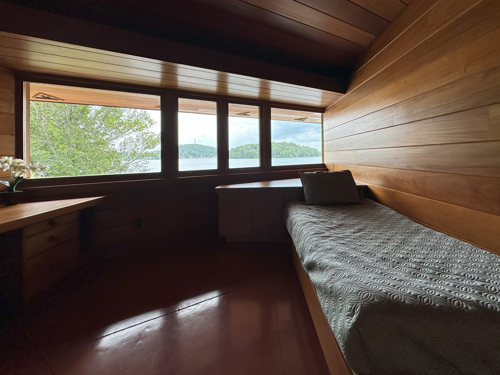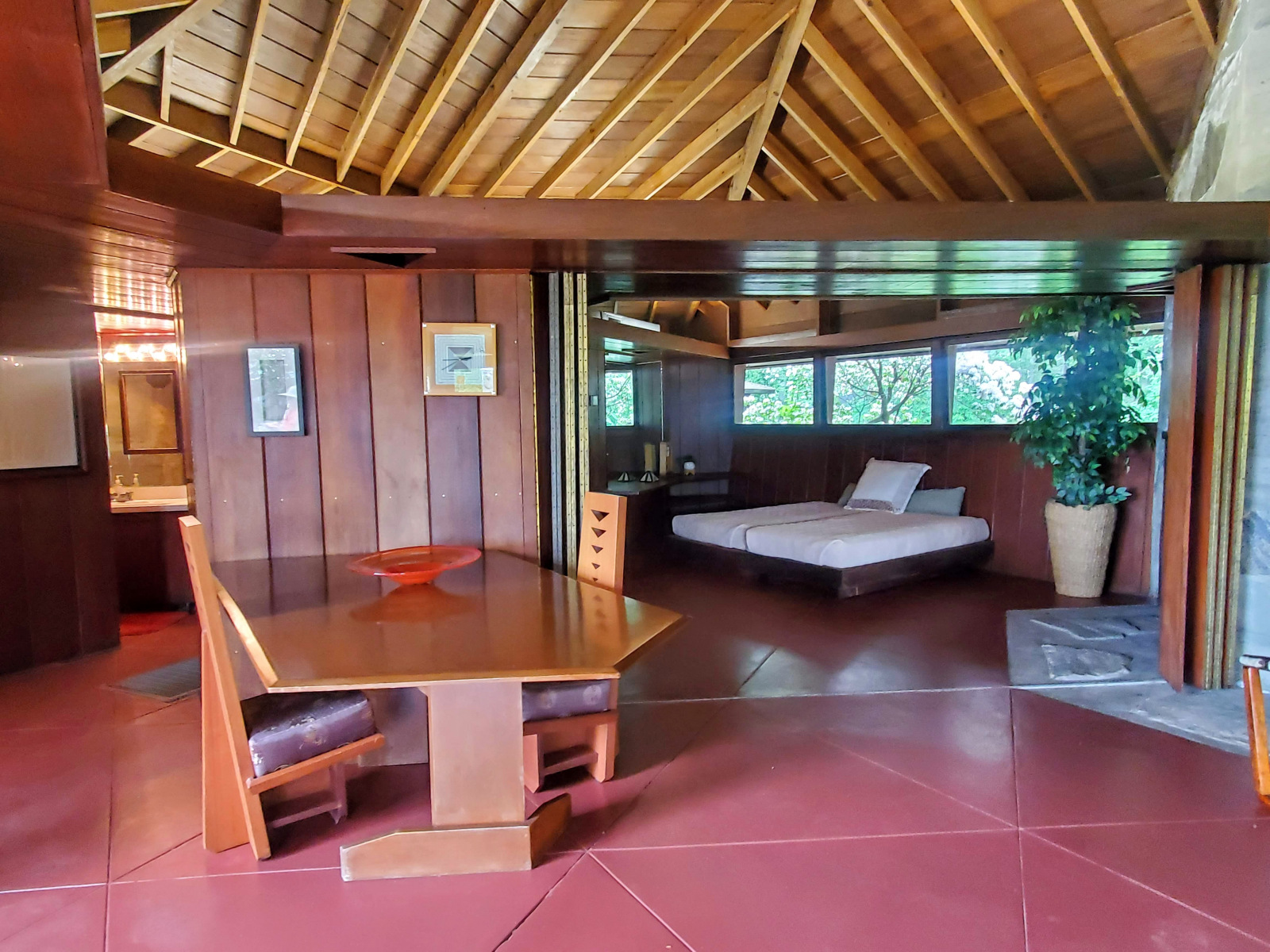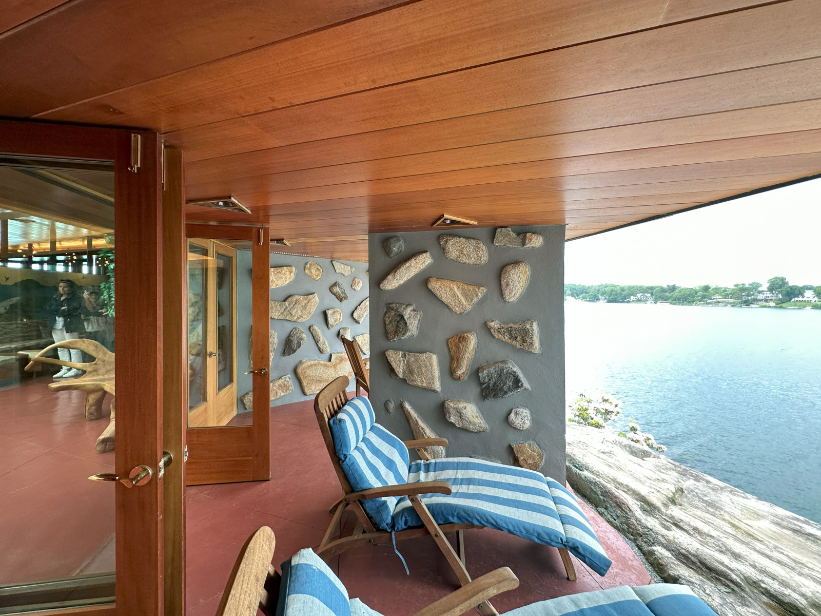 Architects League Past President Joseph E. David, AIA, remarked, “There are two buildings at Petra Island, an original Frank Lloyd Wright guesthouse and the more recently completed main residence. While both buildings are quite nice and well positioned on a spectacular site, you can really tell which one was designed by Wright and which one was inspired by him. The Frank Lloyd Wright Foundation was not involved with the new building, and when you’re there it’s hard not to imagine how much better the building and detailing would have been if they were.”