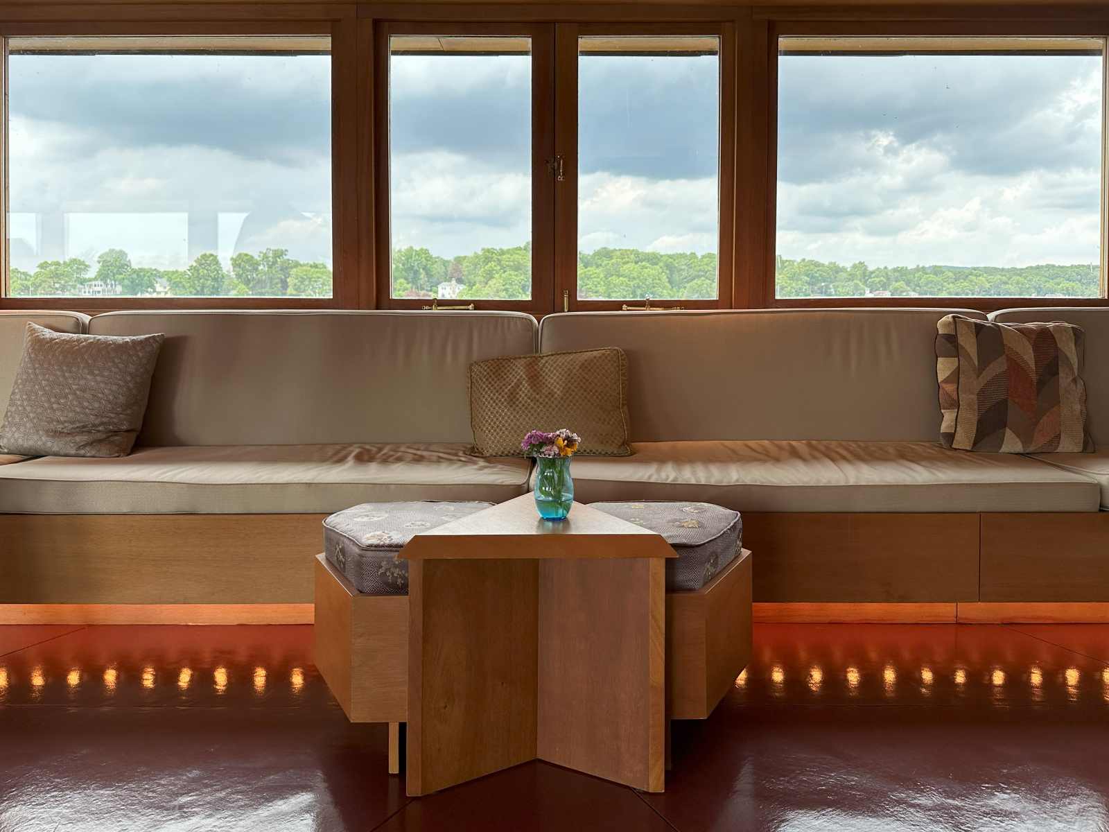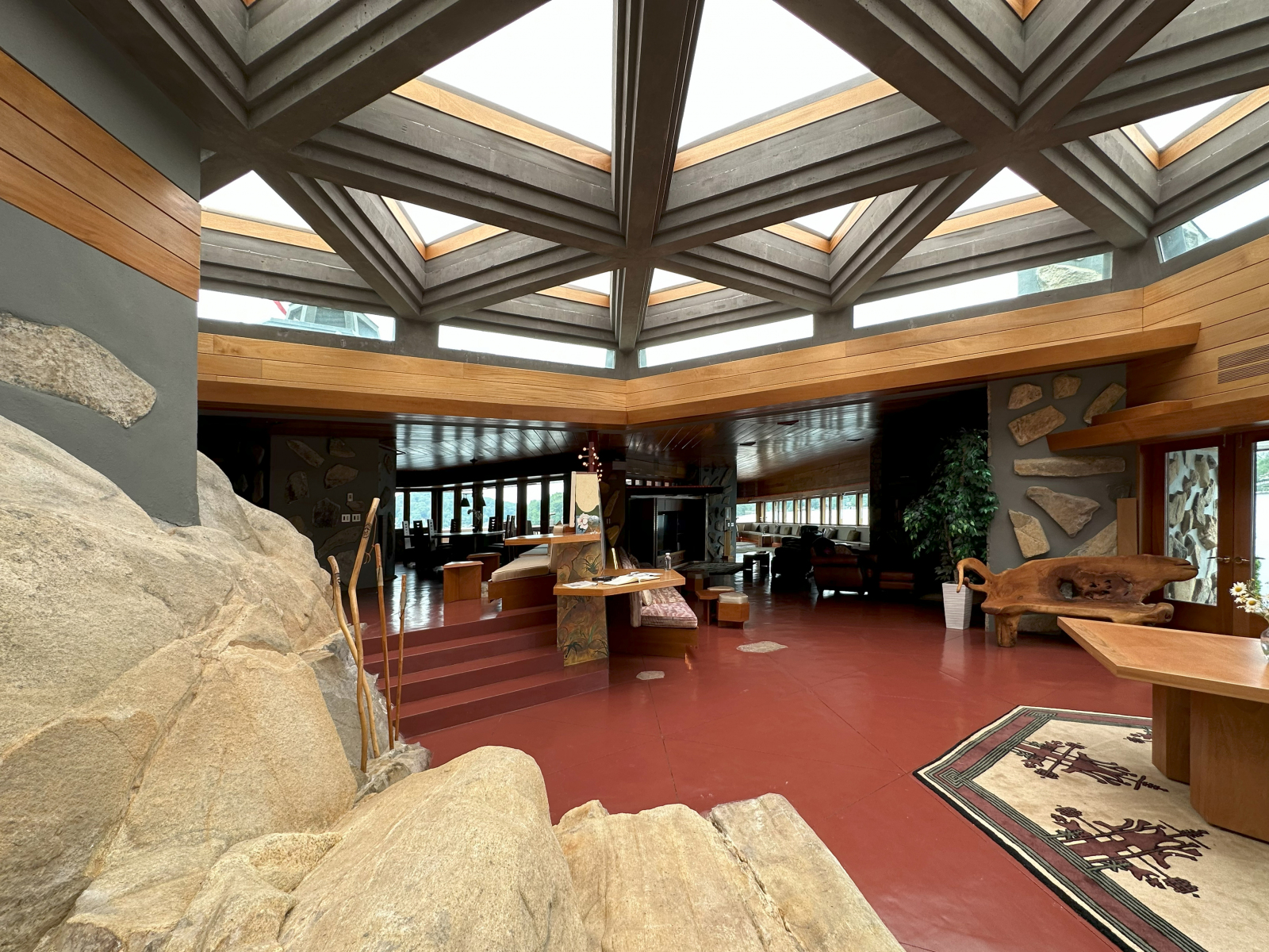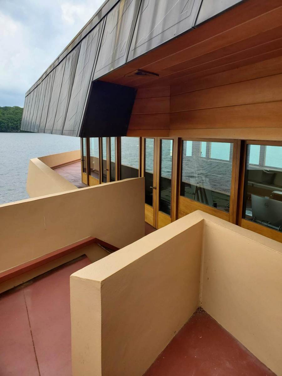 Architects League Past President Joseph E. David, AIA, remarked, “There are two buildings at Petra Island, an original Frank Lloyd Wright guesthouse and the more recently completed main residence. While both buildings are quite nice and well positioned on a spectacular site, you can really tell which one was designed by Wright and which one was inspired by him. The Frank Lloyd Wright Foundation was not involved with the new building, and when you’re there it’s hard not to imagine how much better the building and detailing would have been if they were.”