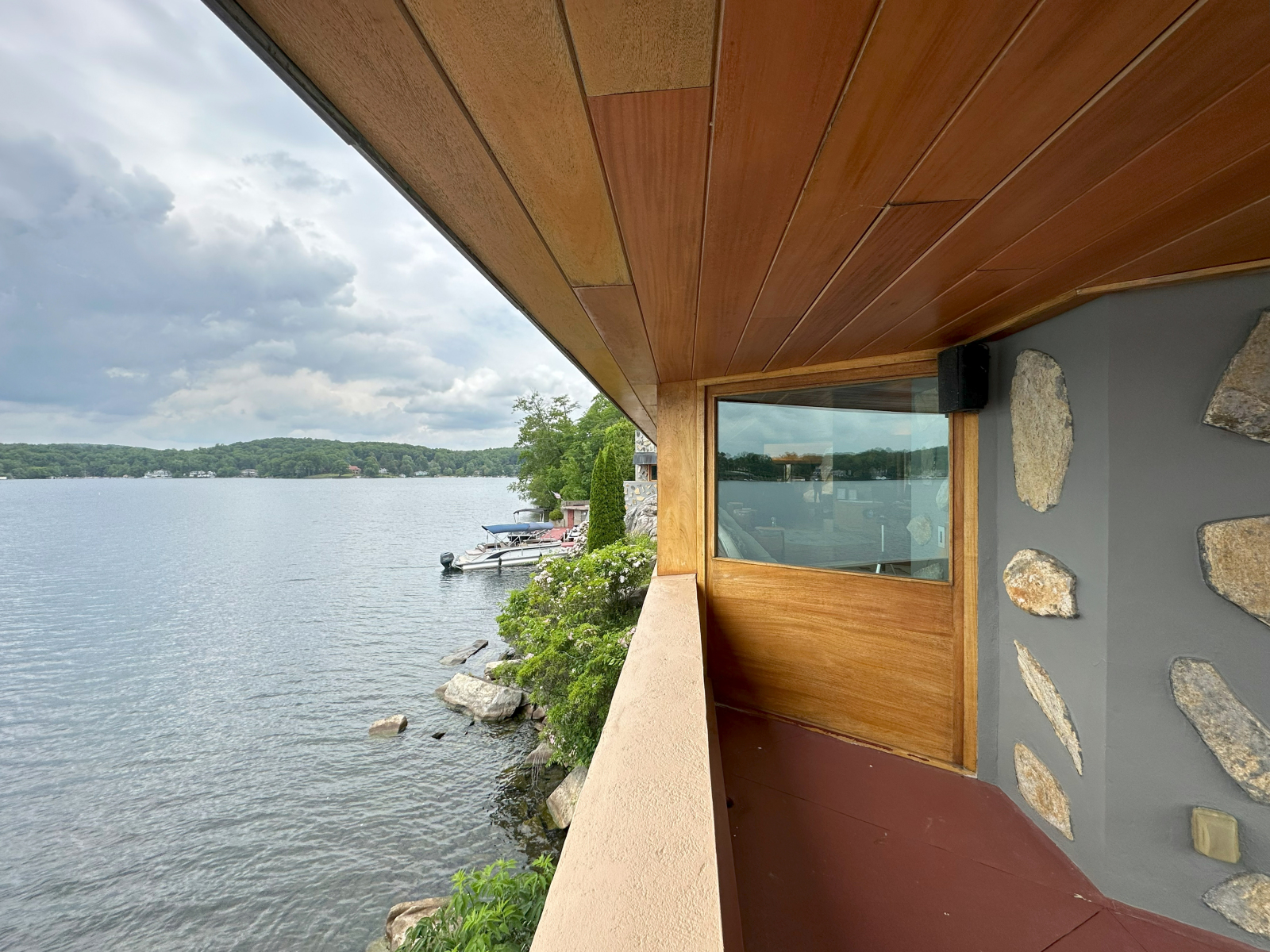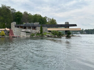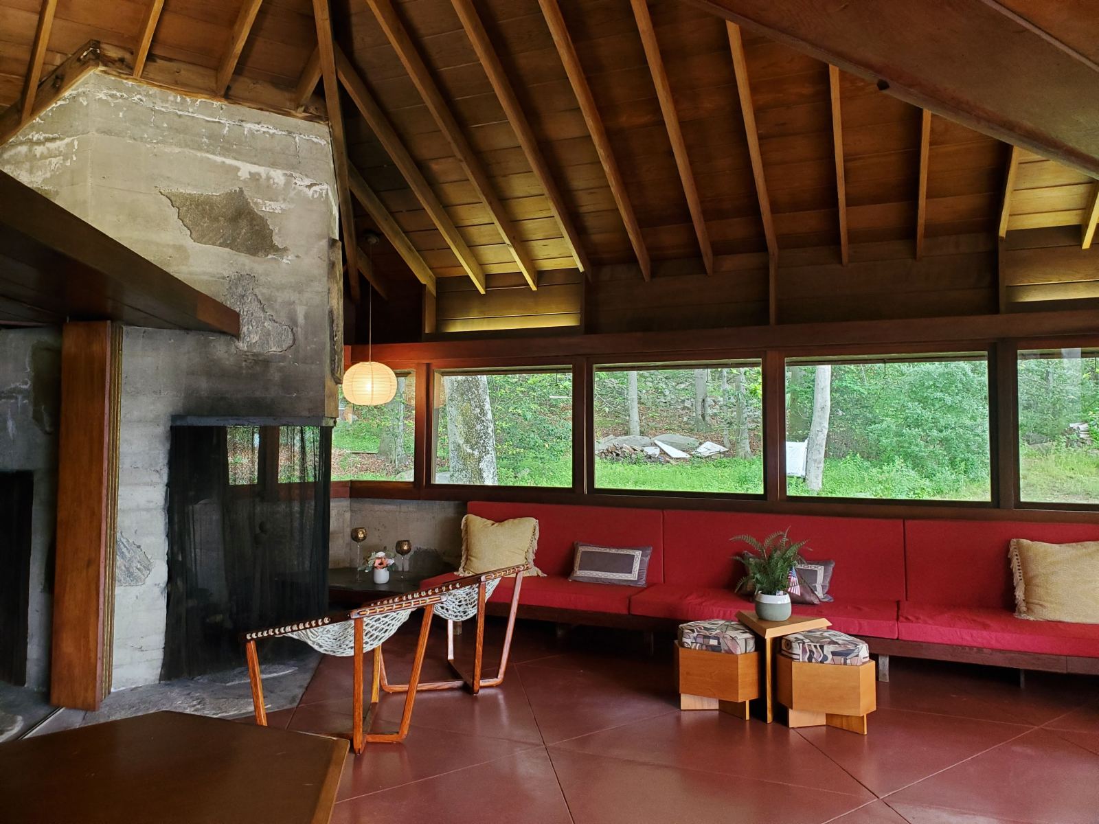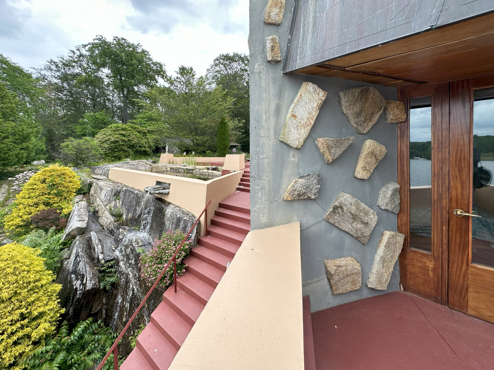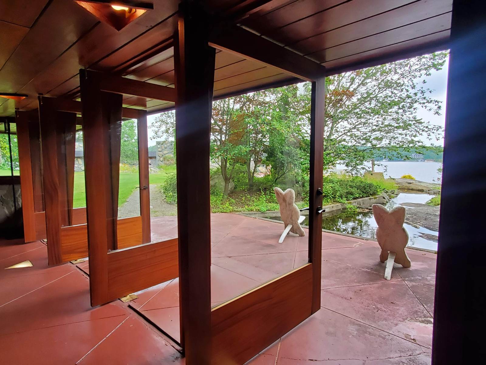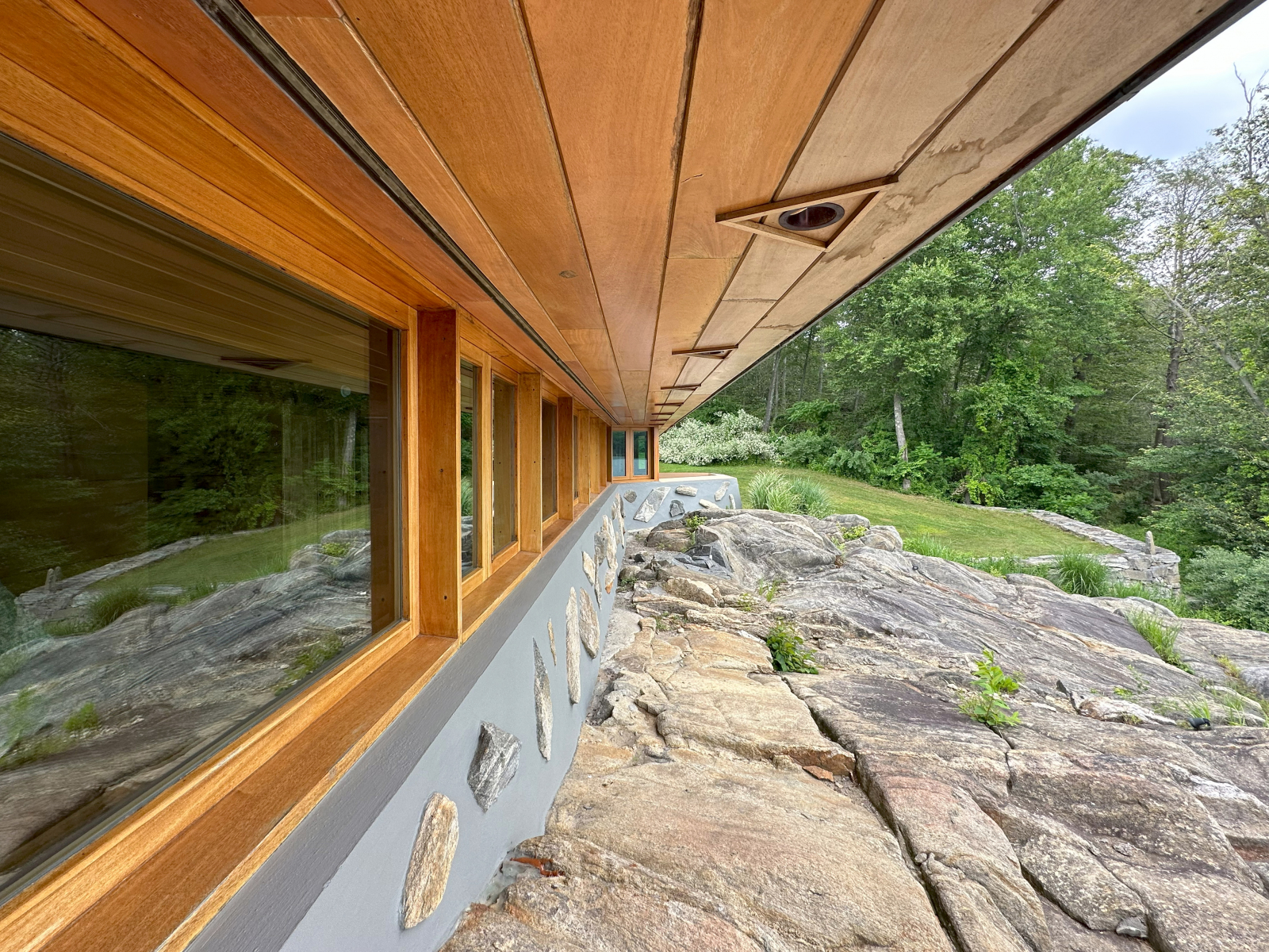In June, we celebrate Frank Lloyd Wright’s Birthday. To commemorate the occasion, five AIA New Jersey members took a guided tour of Petra Island in Mahopac, NY, to visit the Chahroudi House, designed by Frank Lloyd Wright, and the Massaro House, inspired by a Frank Lloyd Wright (FLW) design for the same site. Current owner of the island and both residences, Joseph Massaro, conducted the tour.