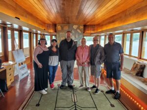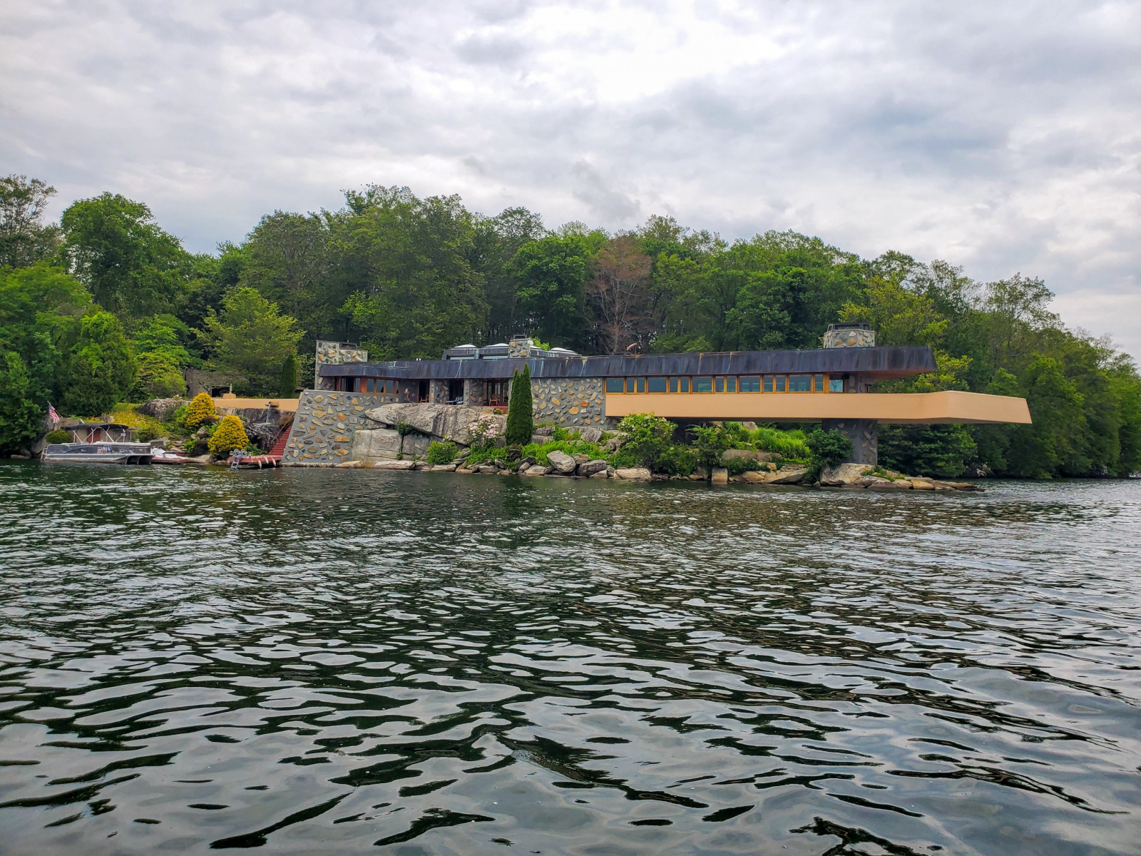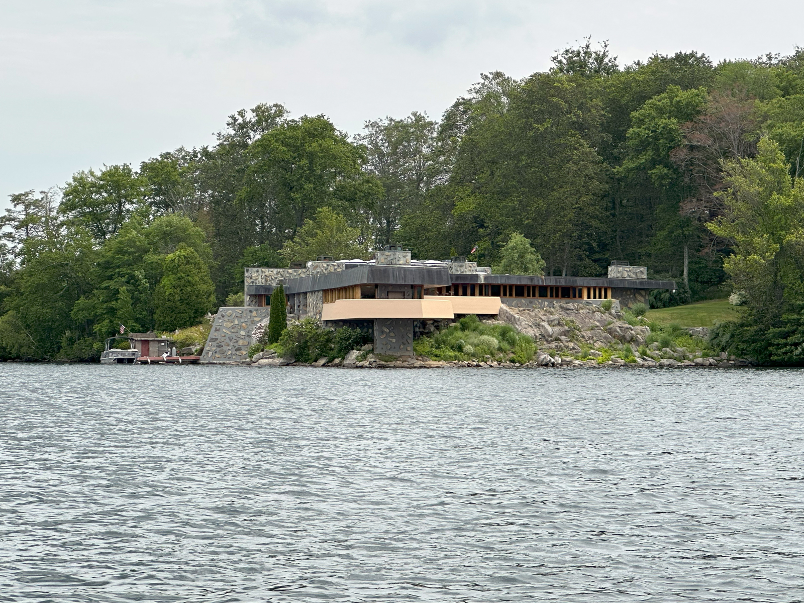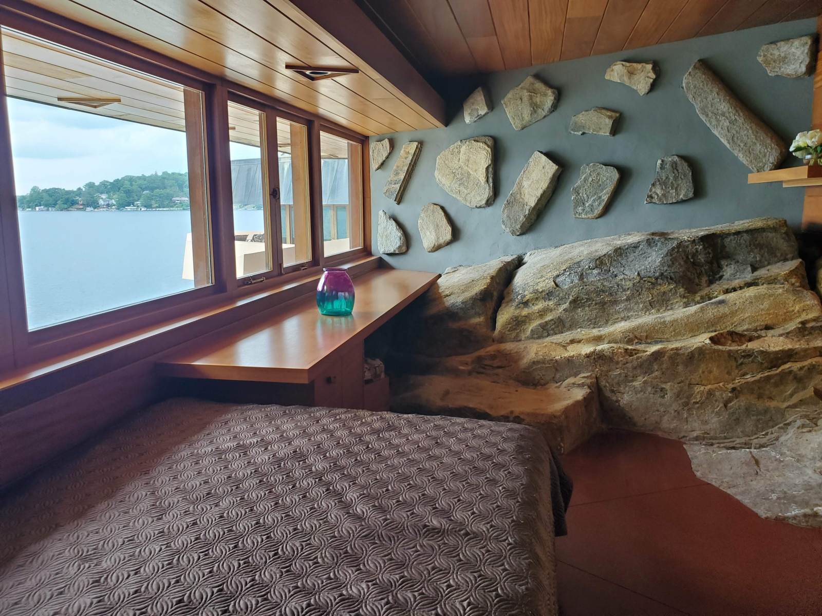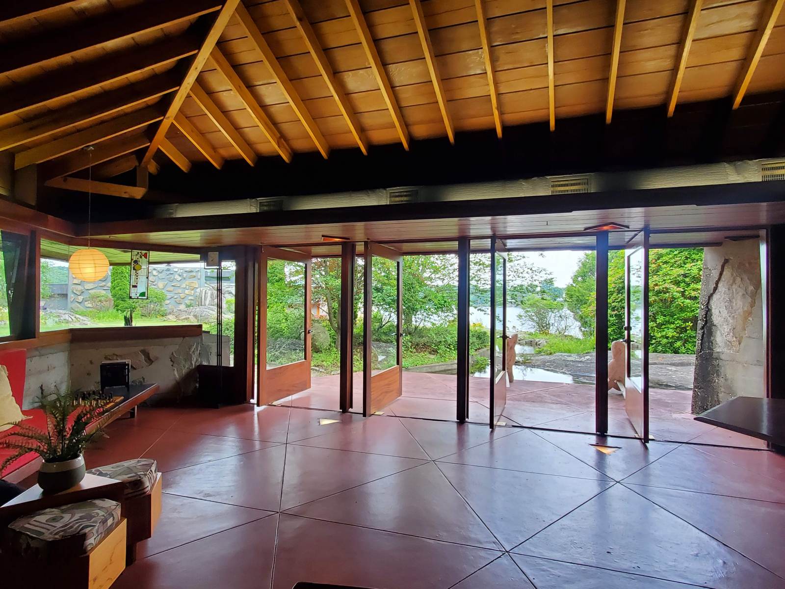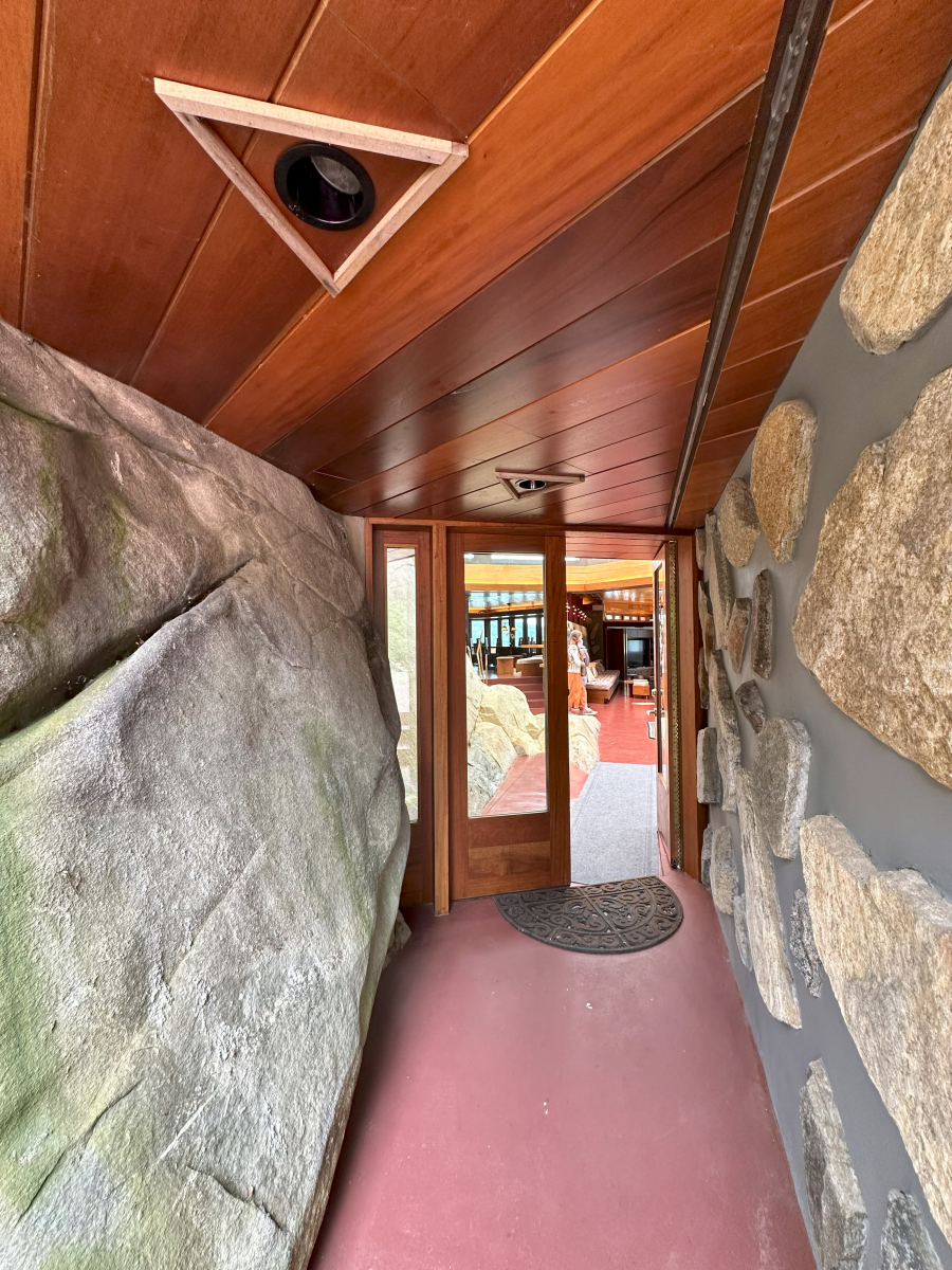 In June, we celebrate Frank Lloyd Wright’s Birthday. To commemorate the occasion, five AIA New Jersey members took a guided tour of Petra Island in Mahopac, NY, to visit the Chahroudi House, designed by Frank Lloyd Wright, and the Massaro House, inspired by a Frank Lloyd Wright (FLW) design for the same site. Current owner of the island and both residences, Joseph Massaro, conducted the tour.