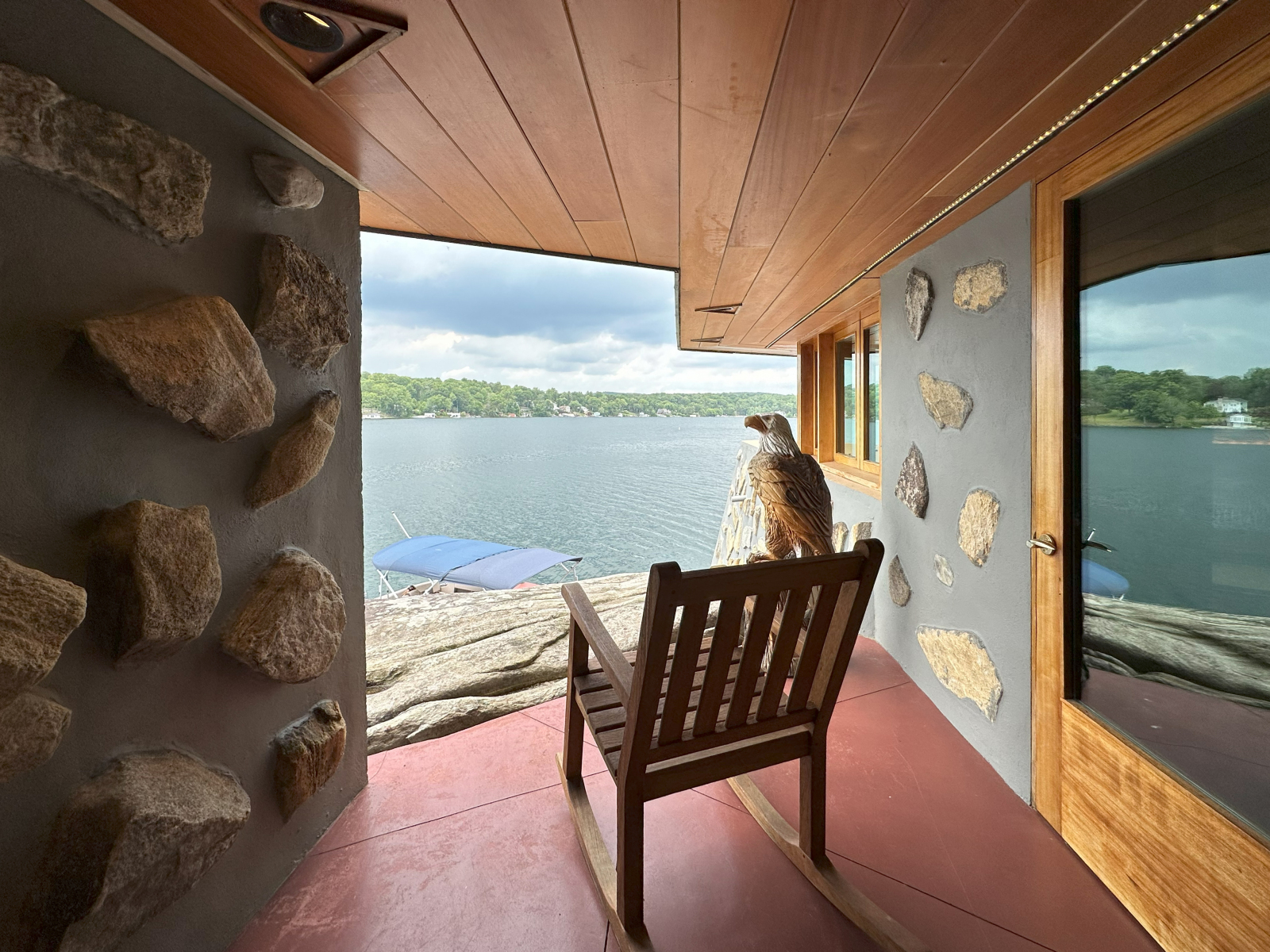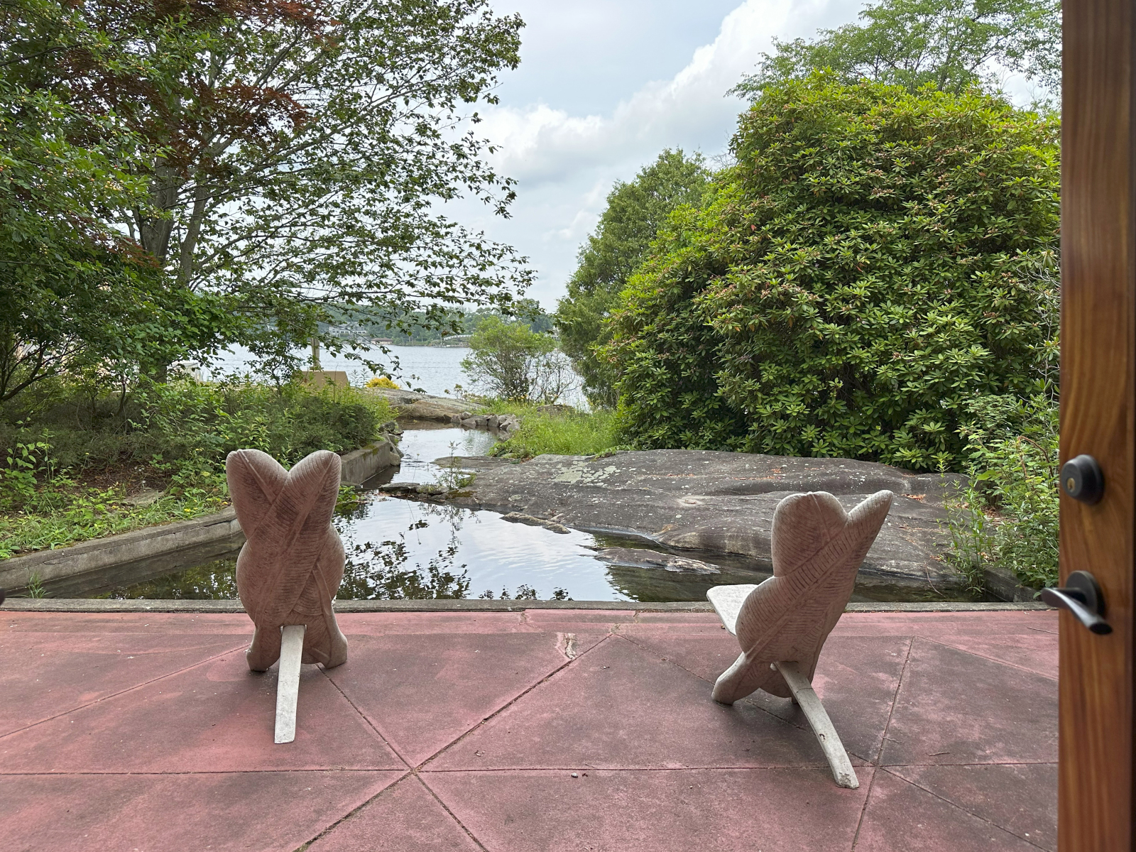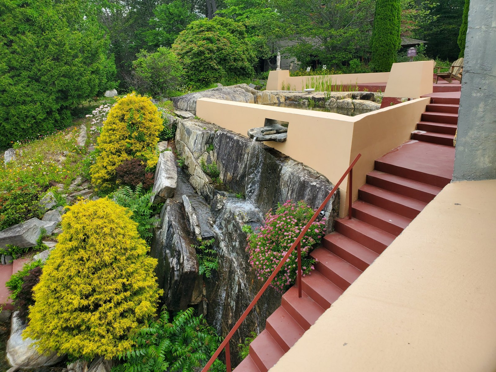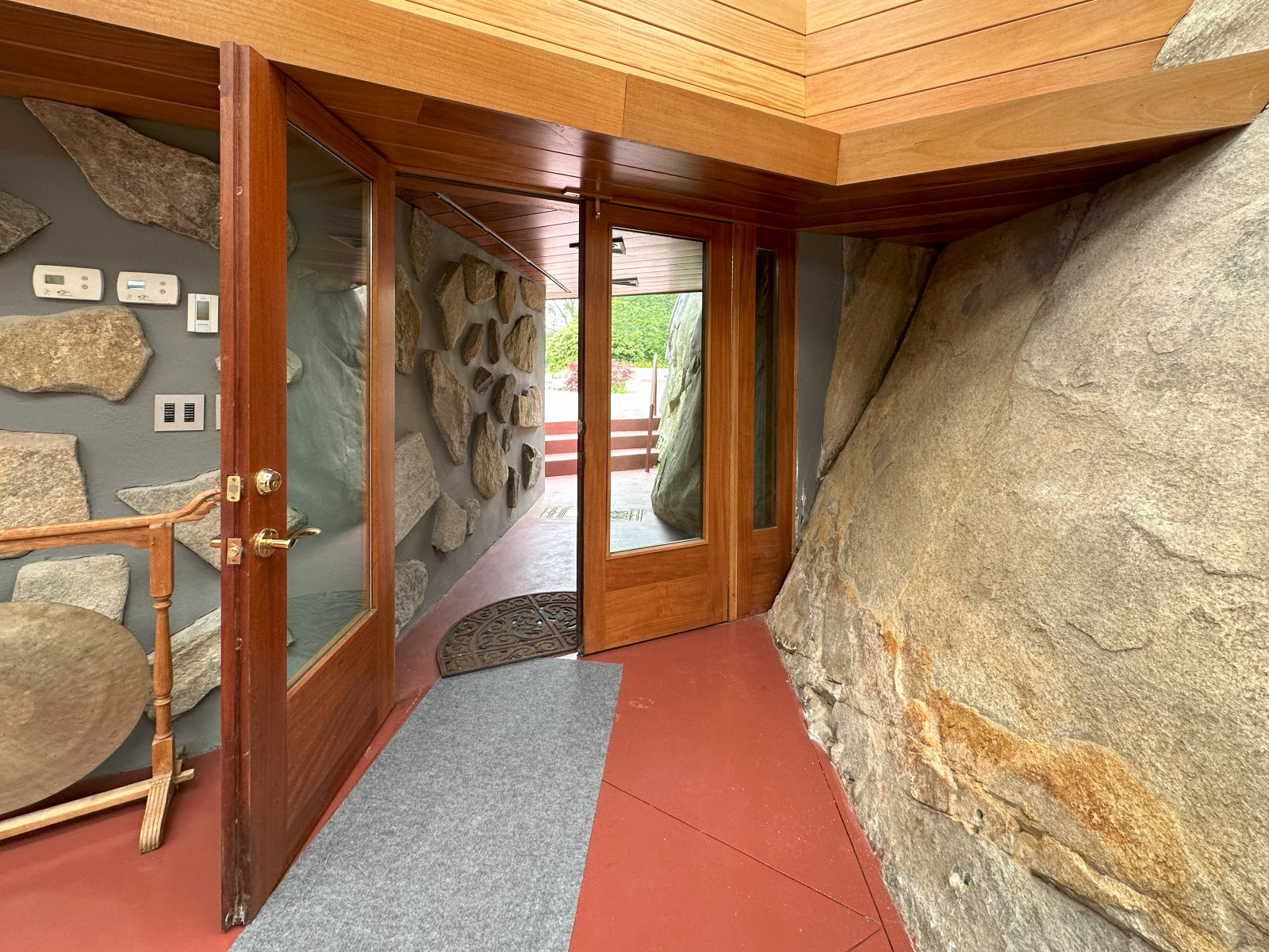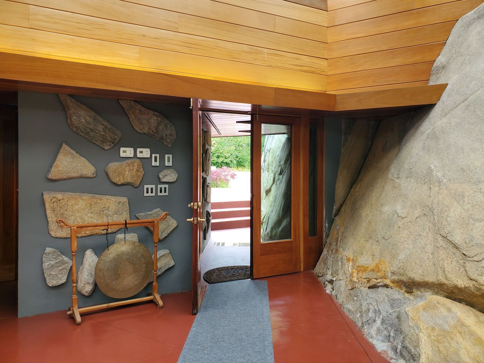 In June, we celebrate Frank Lloyd Wright’s Birthday. To commemorate the occasion, five AIA New Jersey members took a guided tour of Petra Island in Mahopac, NY, to visit the Chahroudi House, designed by Frank Lloyd Wright, and the Massaro House, inspired by a Frank Lloyd Wright (FLW) design for the same site. Current owner of the island and both residences, Joseph Massaro, conducted the tour.