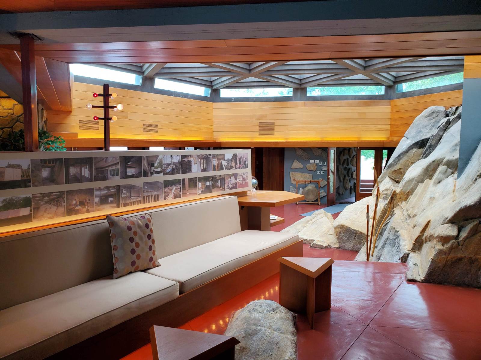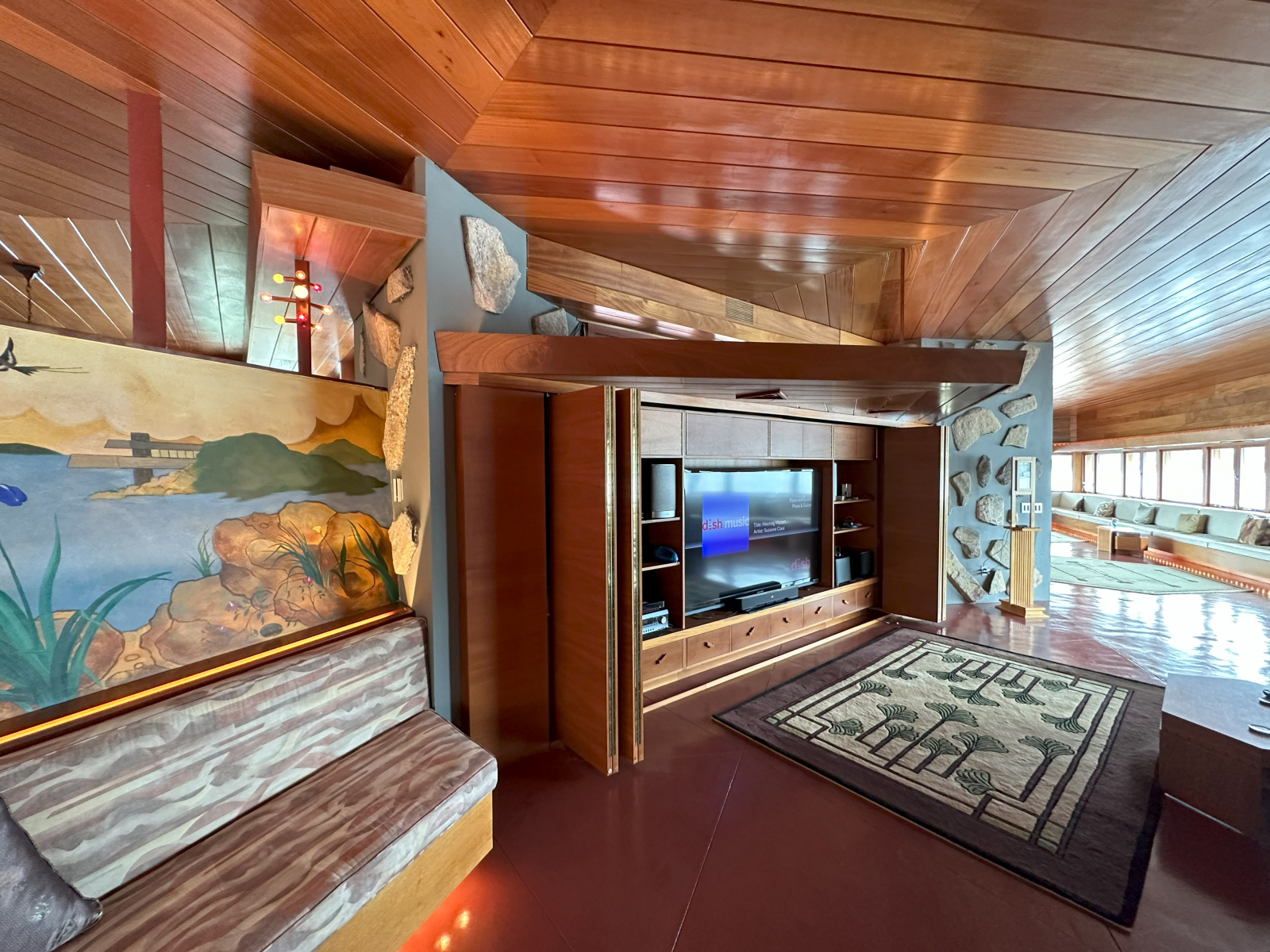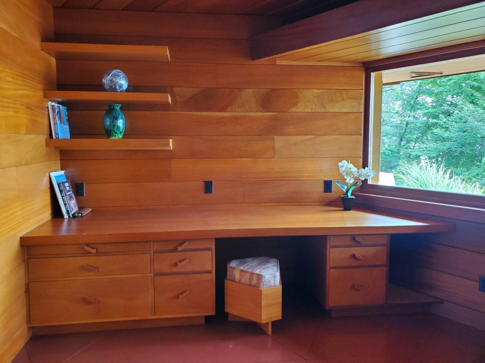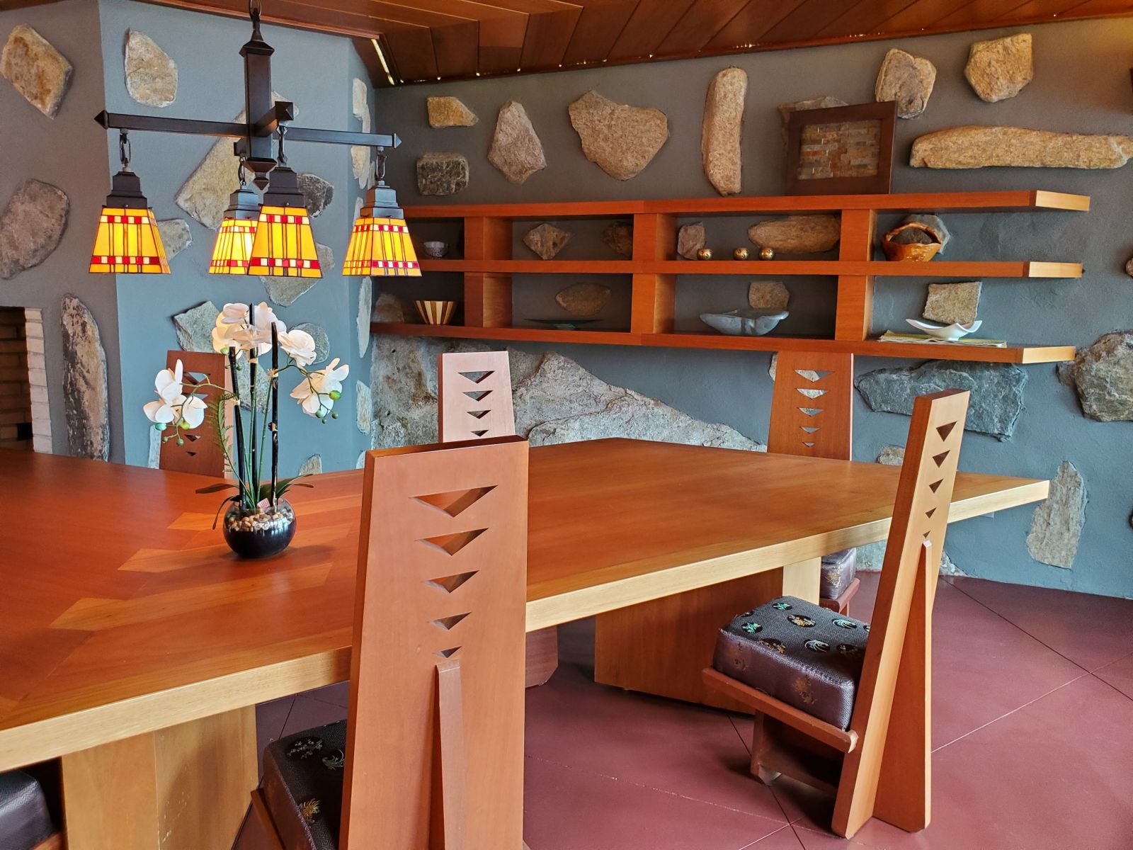 During the completion of the design and construction documents, Joe personally visited a number of other FLW-designed homes, and together with his architect, Thomas A. Heinz, incorporated design elements that they thought would support FLW’s intent. Mrs. Massaro remarked that FLW loved Art Deco and so does she, so she intentionally sought out art deco furniture and finishes to decorate the homes. Those decisions have been debated by many experts and laypeople. More information on that is available HERE.