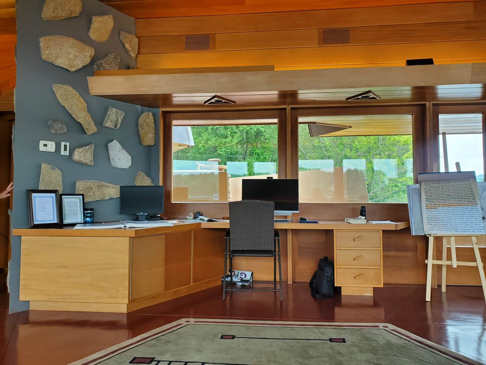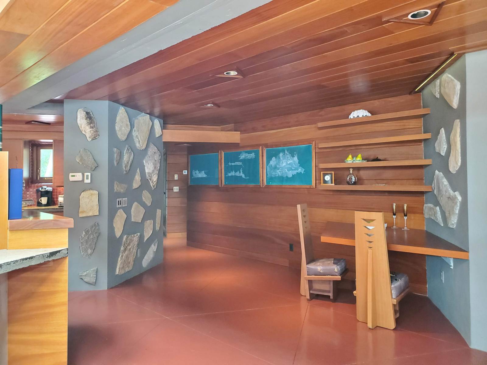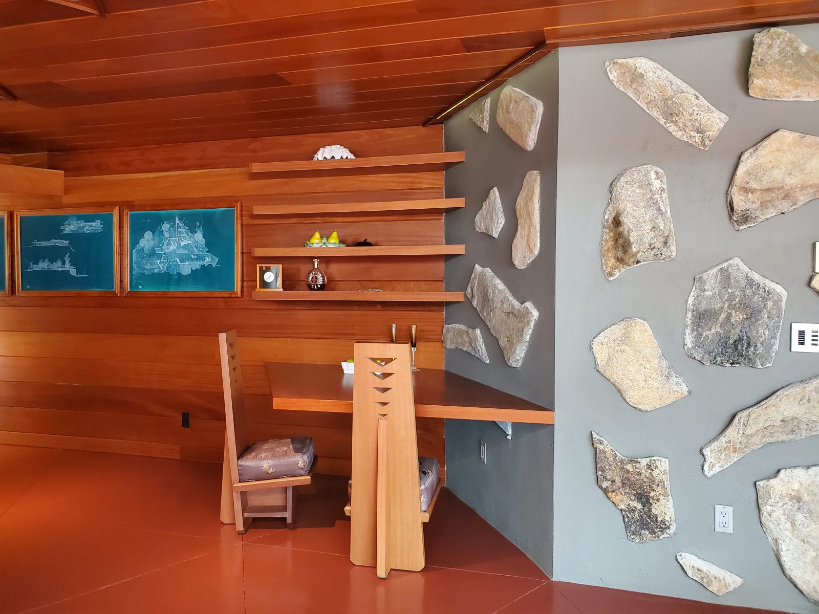 During the completion of the design and construction documents, Joe personally visited a number of other FLW-designed homes, and together with his architect, Thomas A. Heinz, incorporated design elements that they thought would support FLW’s intent. Mrs. Massaro remarked that FLW loved Art Deco and so does she, so she intentionally sought out art deco furniture and finishes to decorate the homes. Those decisions have been debated by many experts and laypeople. More information on that is available HERE.