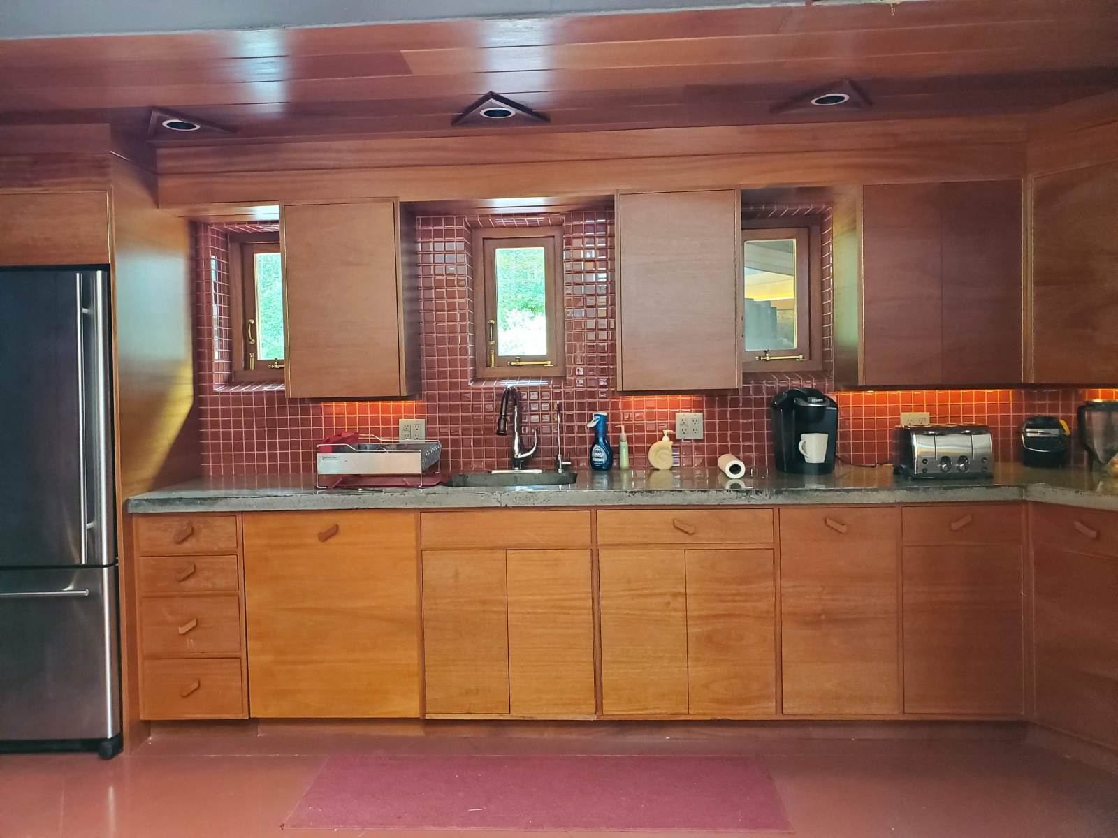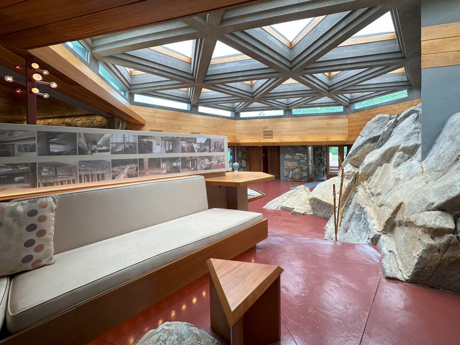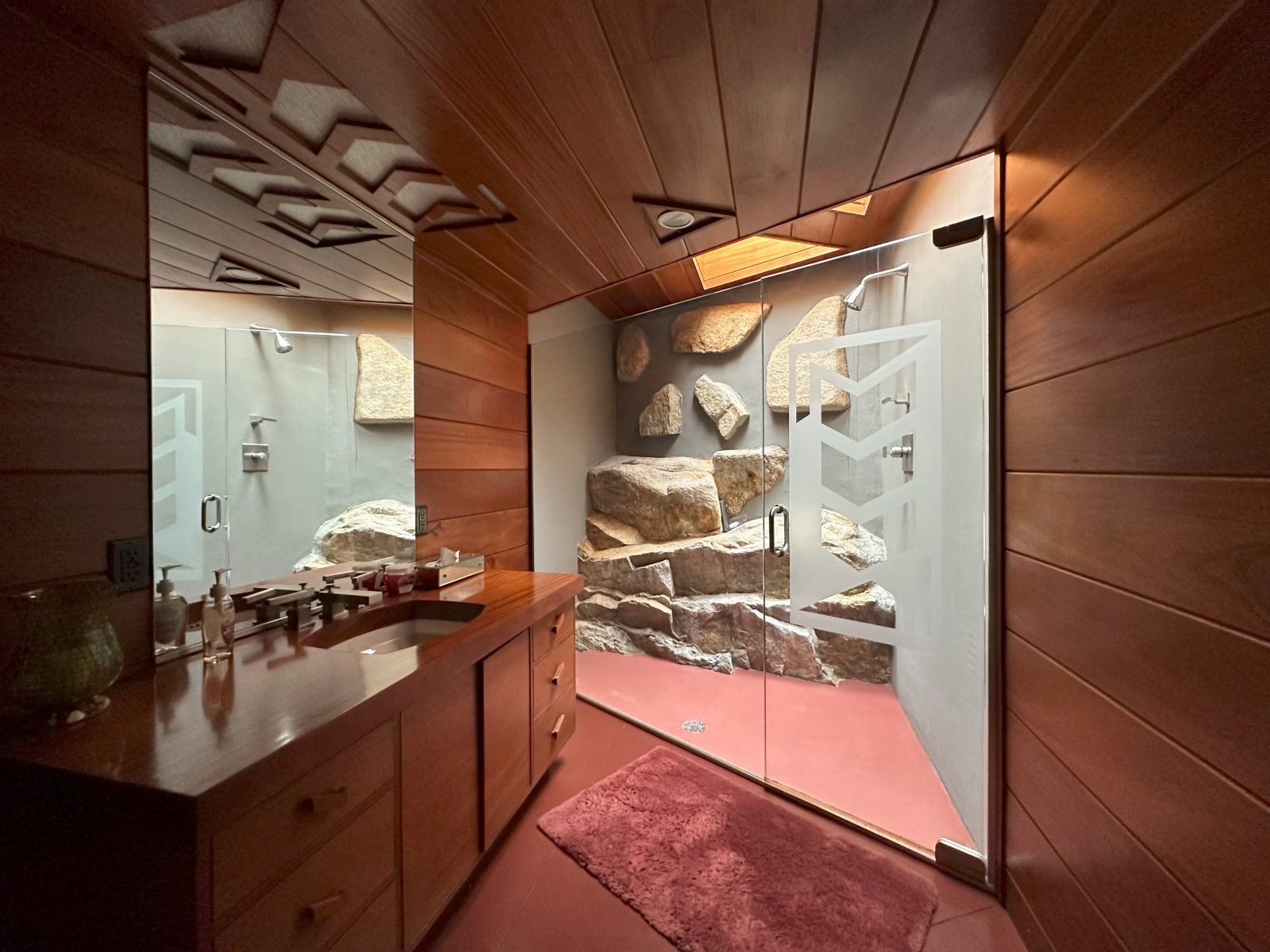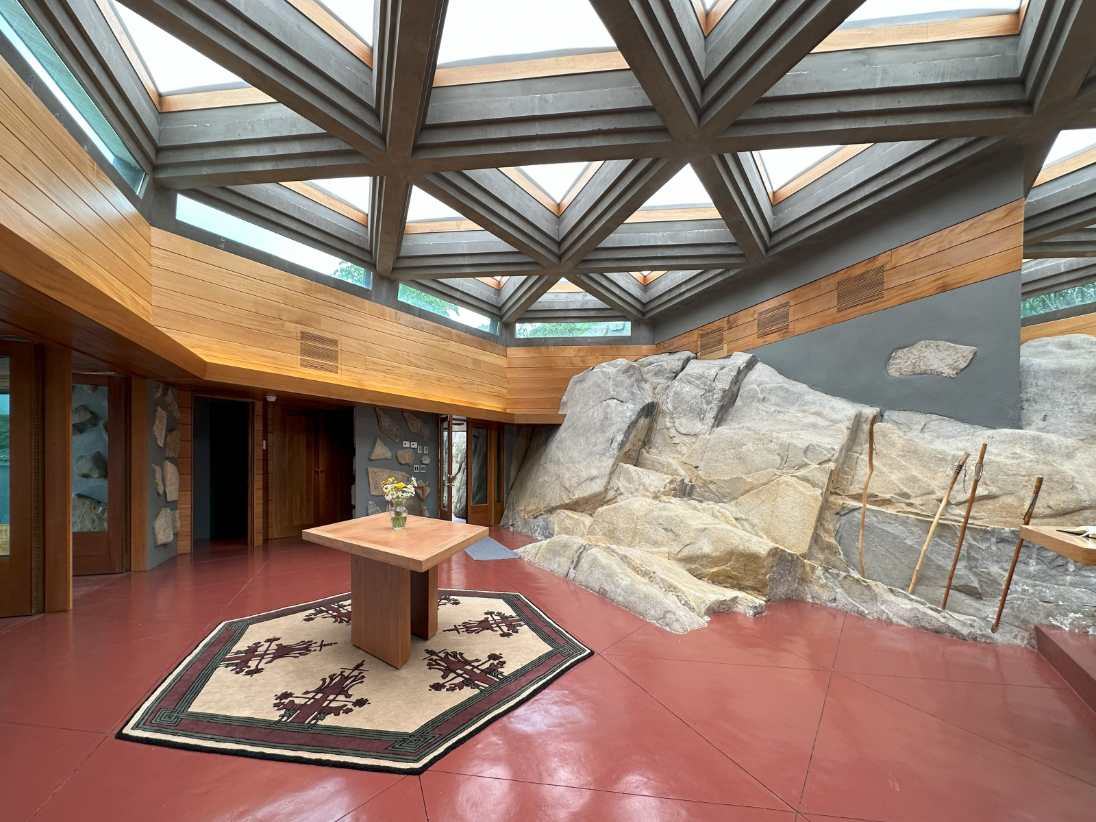 During the completion of the design and construction documents, Joe personally visited a number of other FLW-designed homes, and together with his architect, Thomas A. Heinz, incorporated design elements that they thought would support FLW’s intent. Mrs. Massaro remarked that FLW loved Art Deco and so does she, so she intentionally sought out art deco furniture and finishes to decorate the homes. Those decisions have been debated by many experts and laypeople. More information on that is available HERE.