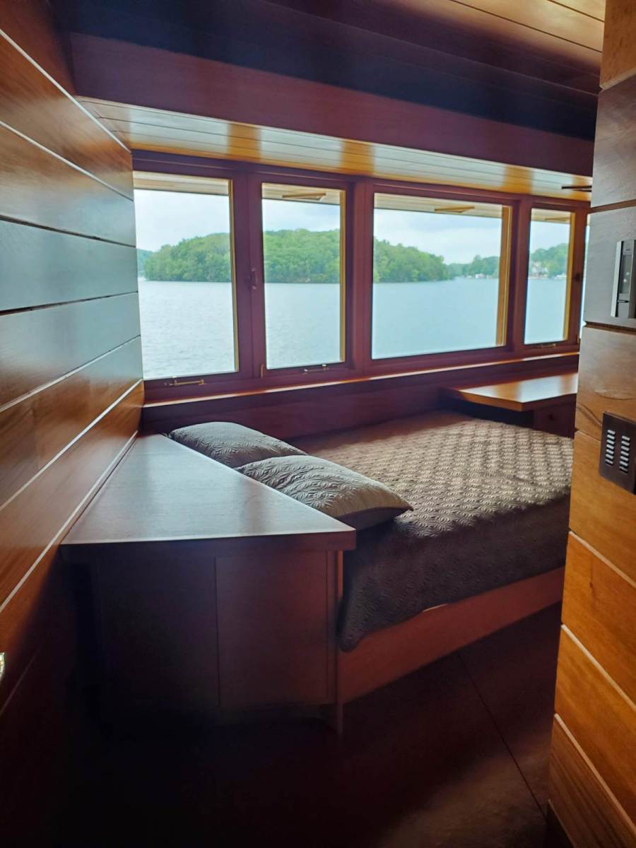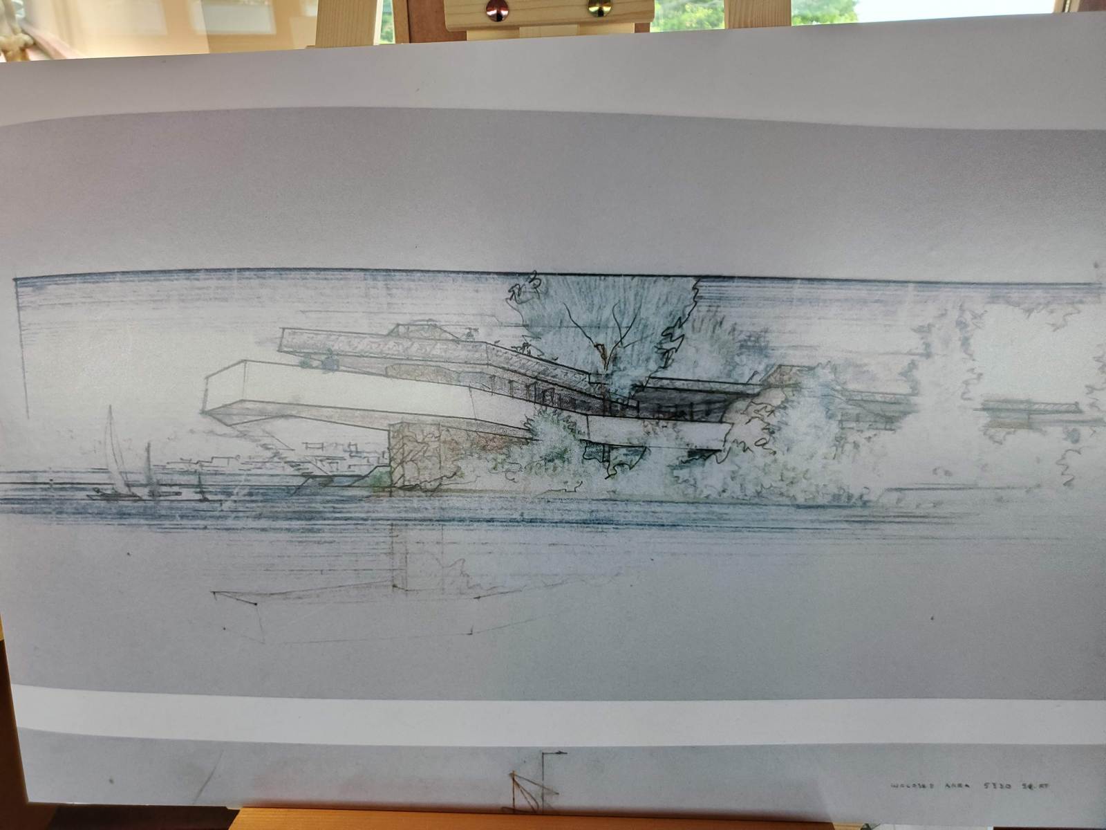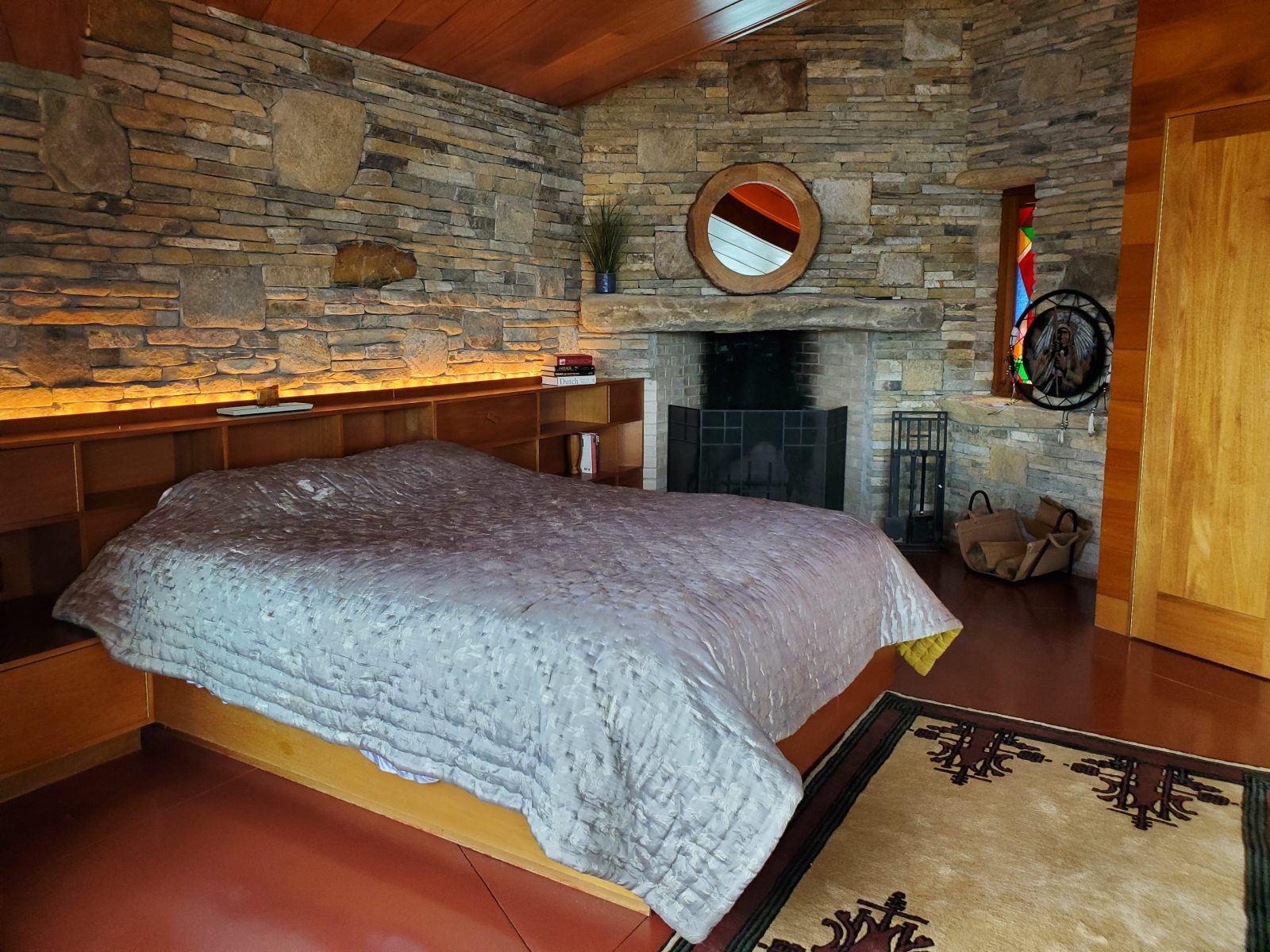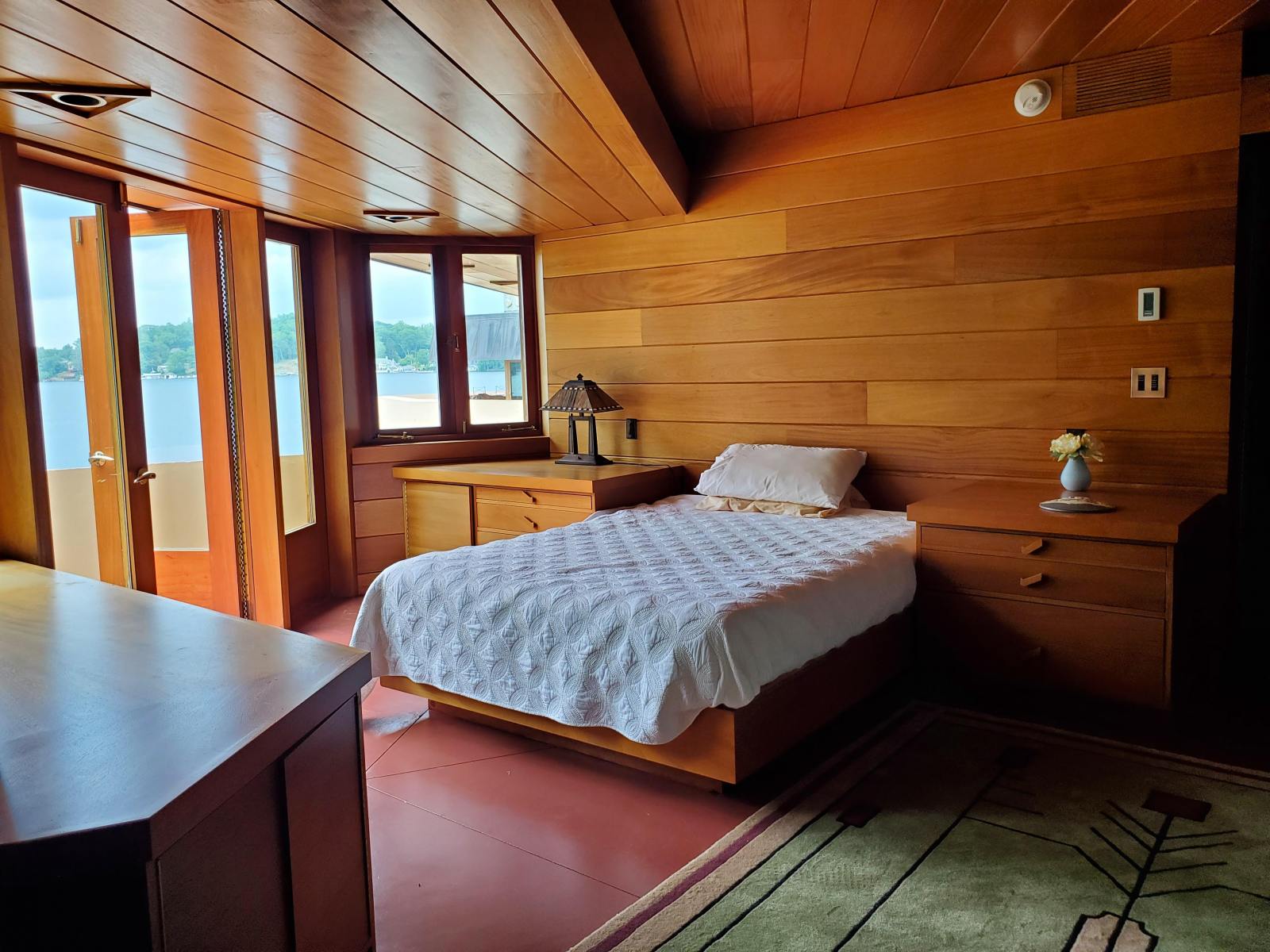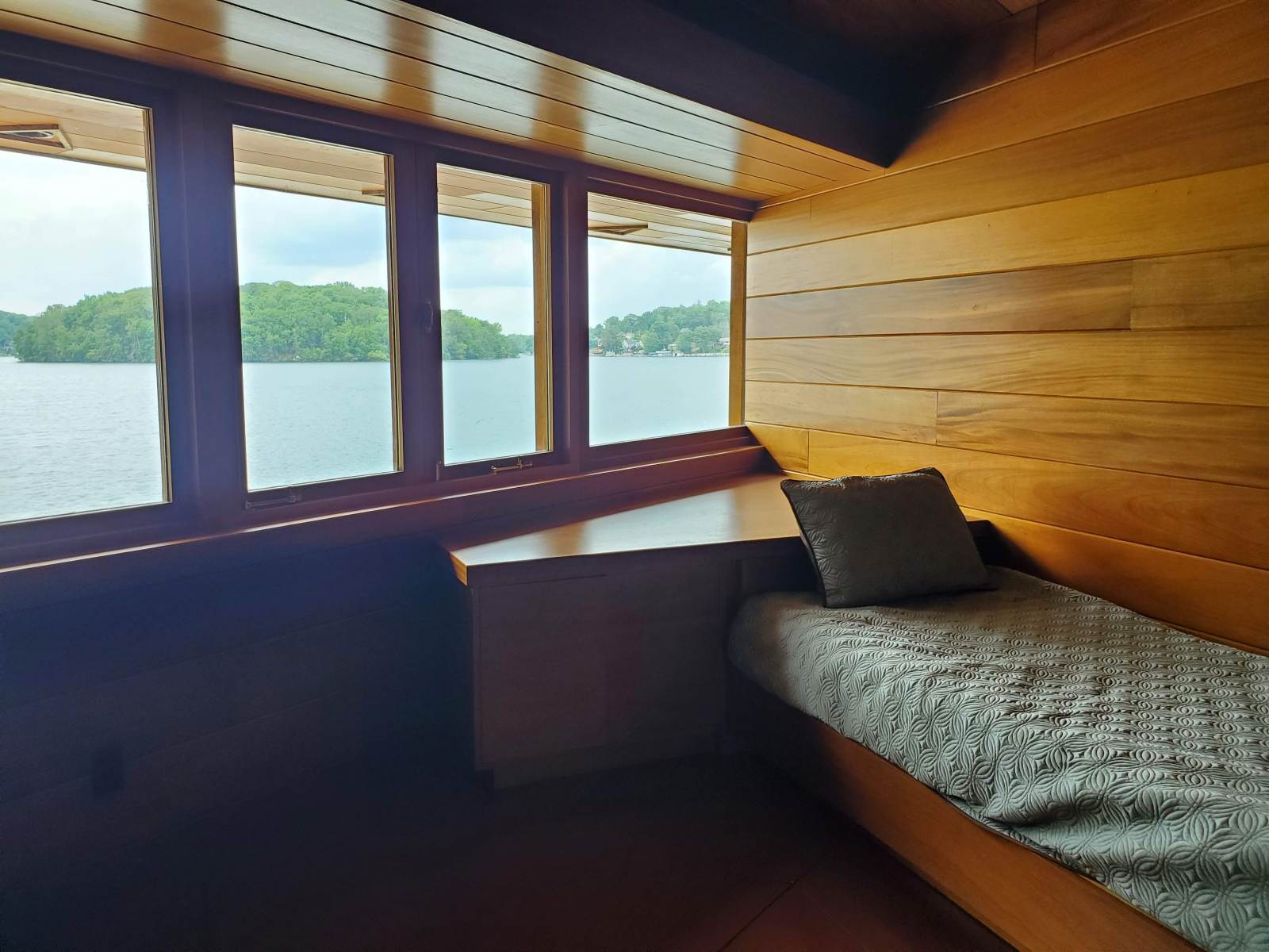 In 2000, Joe began the permitting process and construction commenced in 2002. Tour attendee Helen Logan, AIA, noted, “One of the fascinating facts for me was that one winter the ice in the lake was over 3ft thick, enabling the construction crew to easily transport materials and heavy machinery across the water to the construction site! After the ice thawed, it was too late to remove the backhoe, so it’s still on the island!”