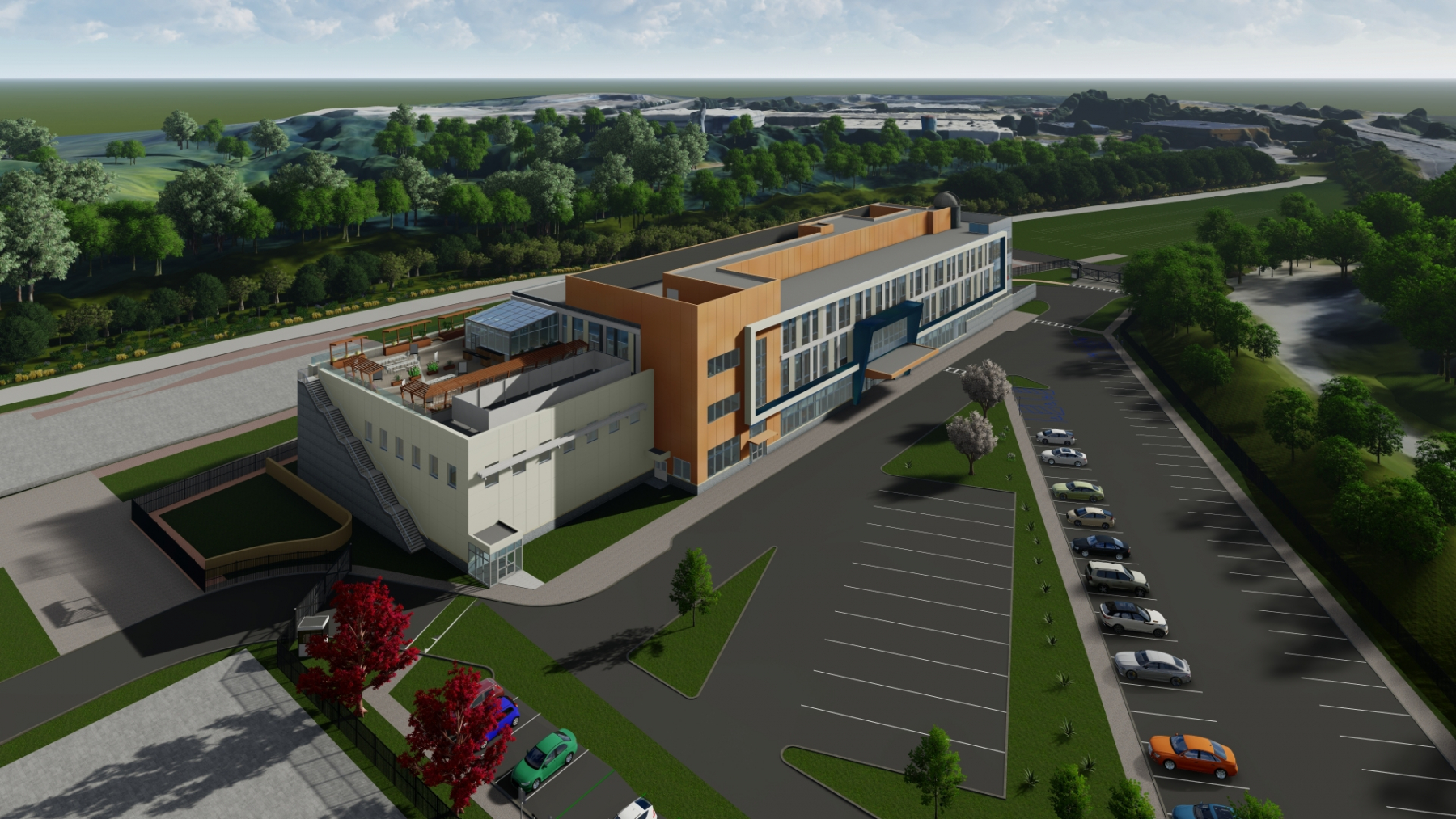 Frank J. Gargiulo Campus School, Hudson County Schools of Technology, Secaucus, NJ. Design/ Bridging Architect: RSC Architects. Design/ Build Architect of Record: DRM Architects