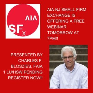 By Stacey Ruhle Kliesch, AIA, AIA NJ Advocacy Consultant | Posted in Small Firms, Women in Architecture | Tagged: #AIANJ, #aianjsfx, #JoshuaZinderAIA, #lisawalzeraia, #RuchiDharAIA, #smallfirmarchitect, #smallfirmbigdesign, #SmallFirms | Comments (0)