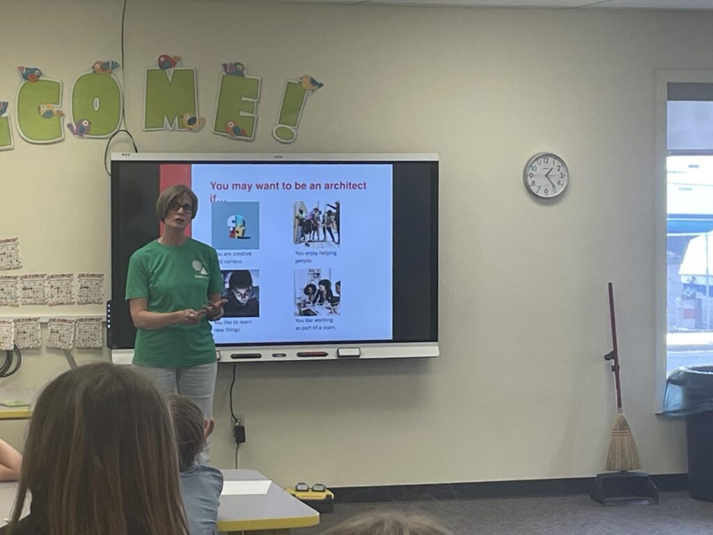 This week, to mark Architecture Week 2024, the 5th-grade class at Bay Head School was fortunate to learn from local architect Mrs. Verity Frizzell, FAIA, Principal at FWH Associates. She spoke about the many jobs of an architect, how to become an architect and the different structures an architect designs. She then led the students in a climate action design challenge using Legos. Students were so interested in her presentation that it was difficult to get them to stop working!