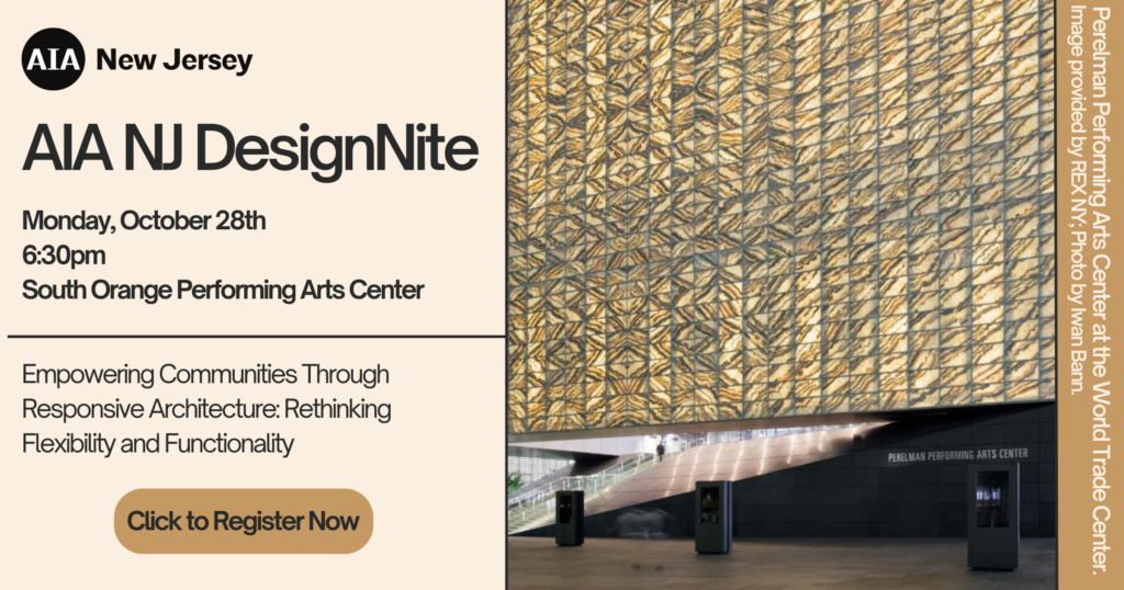 The 2024 AIA NJ Design & Service Award Winners will be announced at this event. Don’t miss the chance—submit your projects and service nominations today! Service Award nominations are due by September 20 and submissions for Design Awards are due by Friday, October 11. State Design Award Submissions from 2022, 2023 and 2024 can also be entered for the Tri-State Design Award Competition (due October 13).
