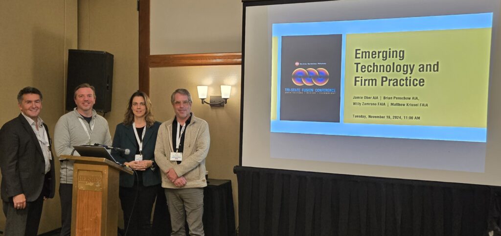 AIA New Jersey – The New Jersey Society of Architects President Brian W. Penschow Aia contributed to another dynamic discussion, this time on Emerging Technology and Firm Practice with colleagues AIA New York State President Willy Zambrano, FAIA, Matthew Krissel, FAIA, and moderator Jamie Ober, AIA. The program was developed by Elysia Mikkelsen, AIA
