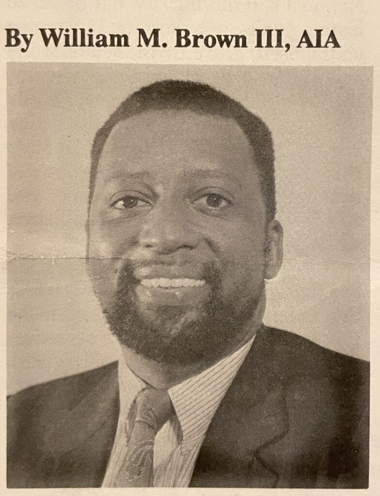 William M. Brown, III, AIA, in the 1995 AIA Newark and Suburban Rostrum Newsletter
