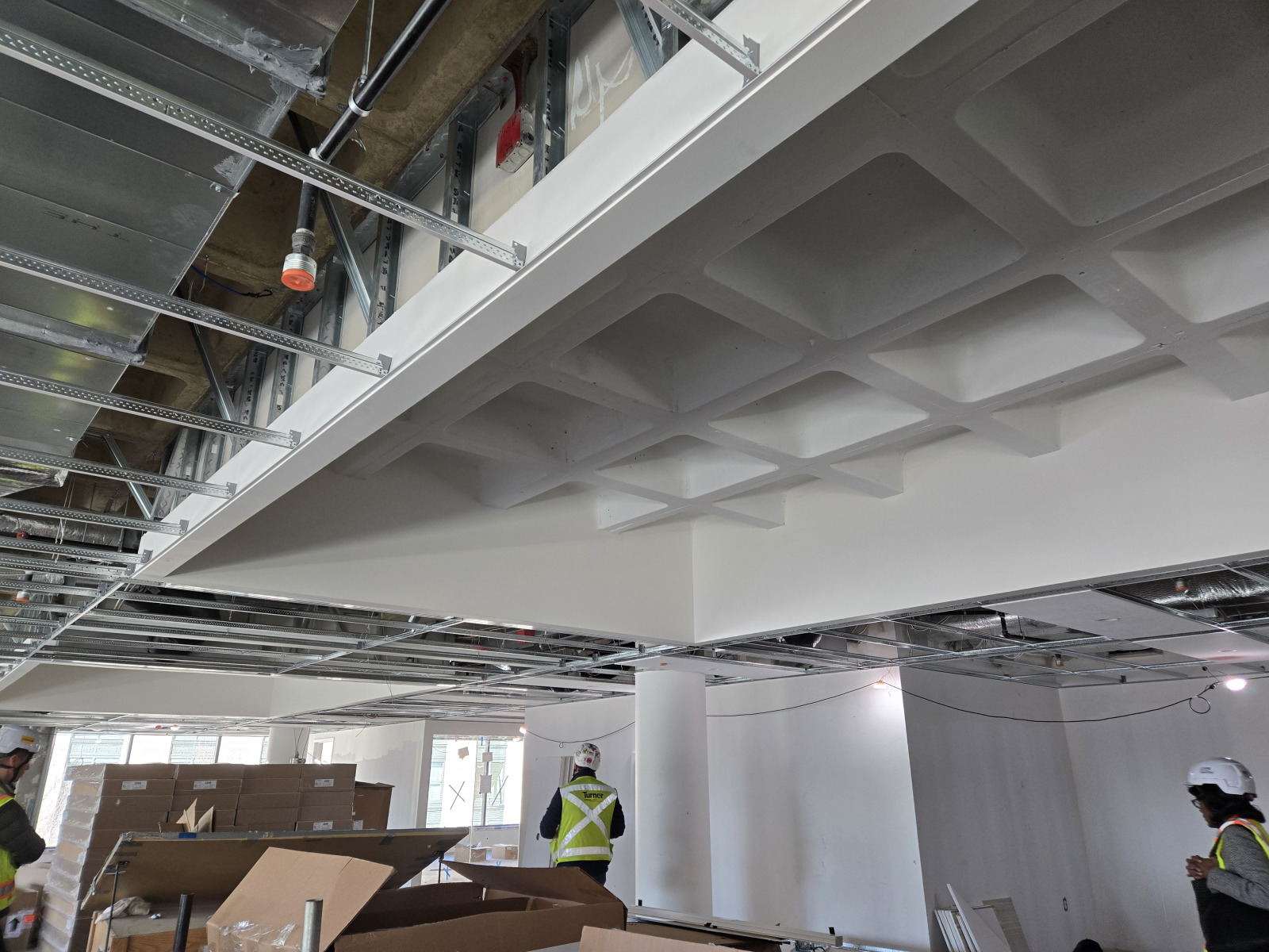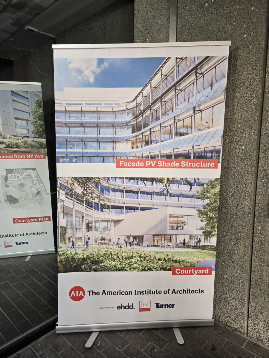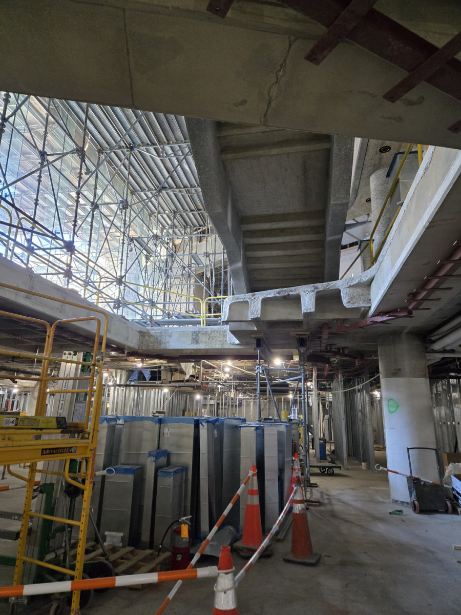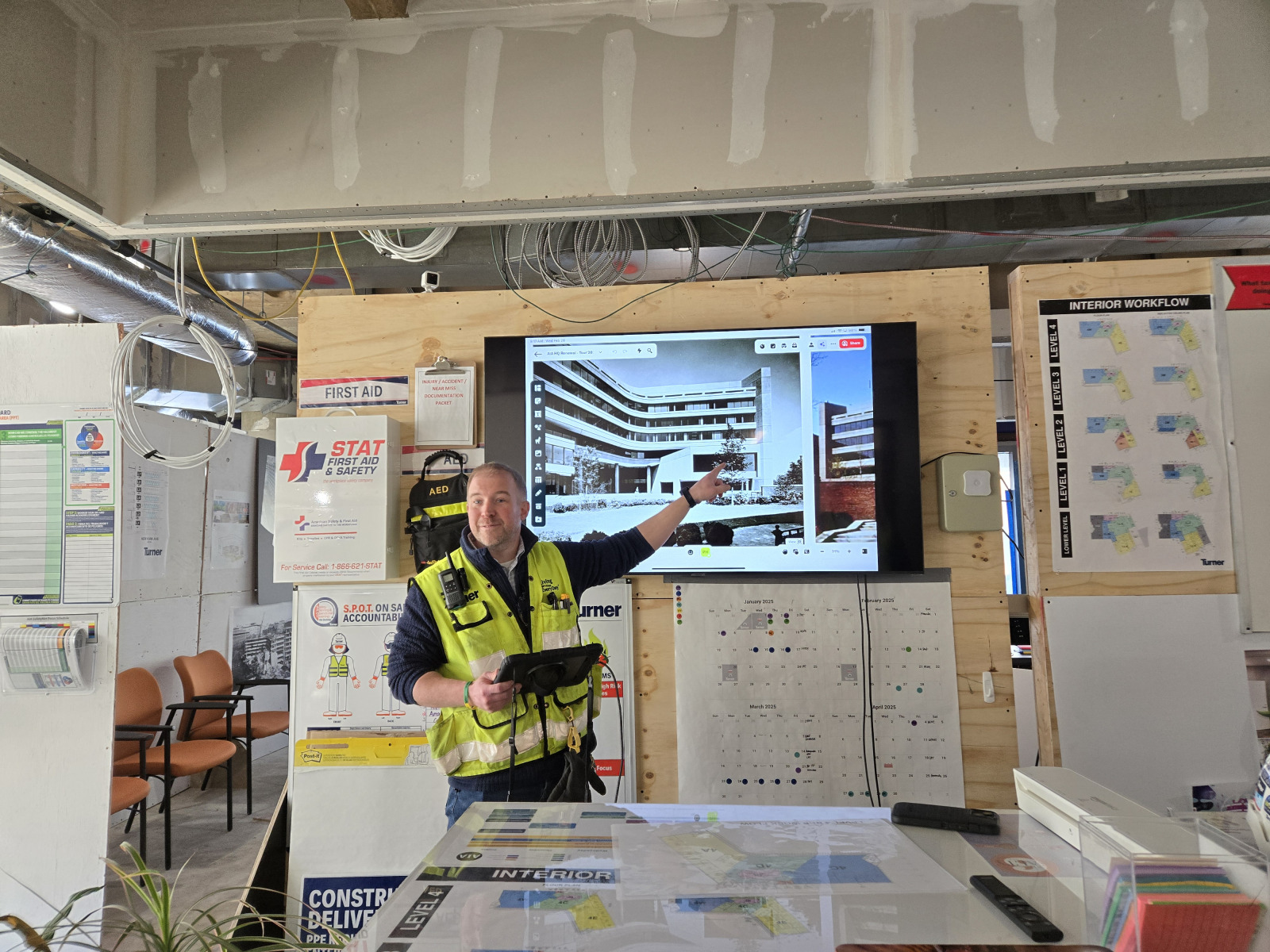 We learned that the first wave of furniture is expected to be installed in April, with AIA staff expected to inhabit the 4th floor in June 2025, and the other floors following. The current “secret” tenant on floors 5, 6 and 7 has continued occupancy during construction and will be staying after AIA returns to the building. The tour and construction are provided by the