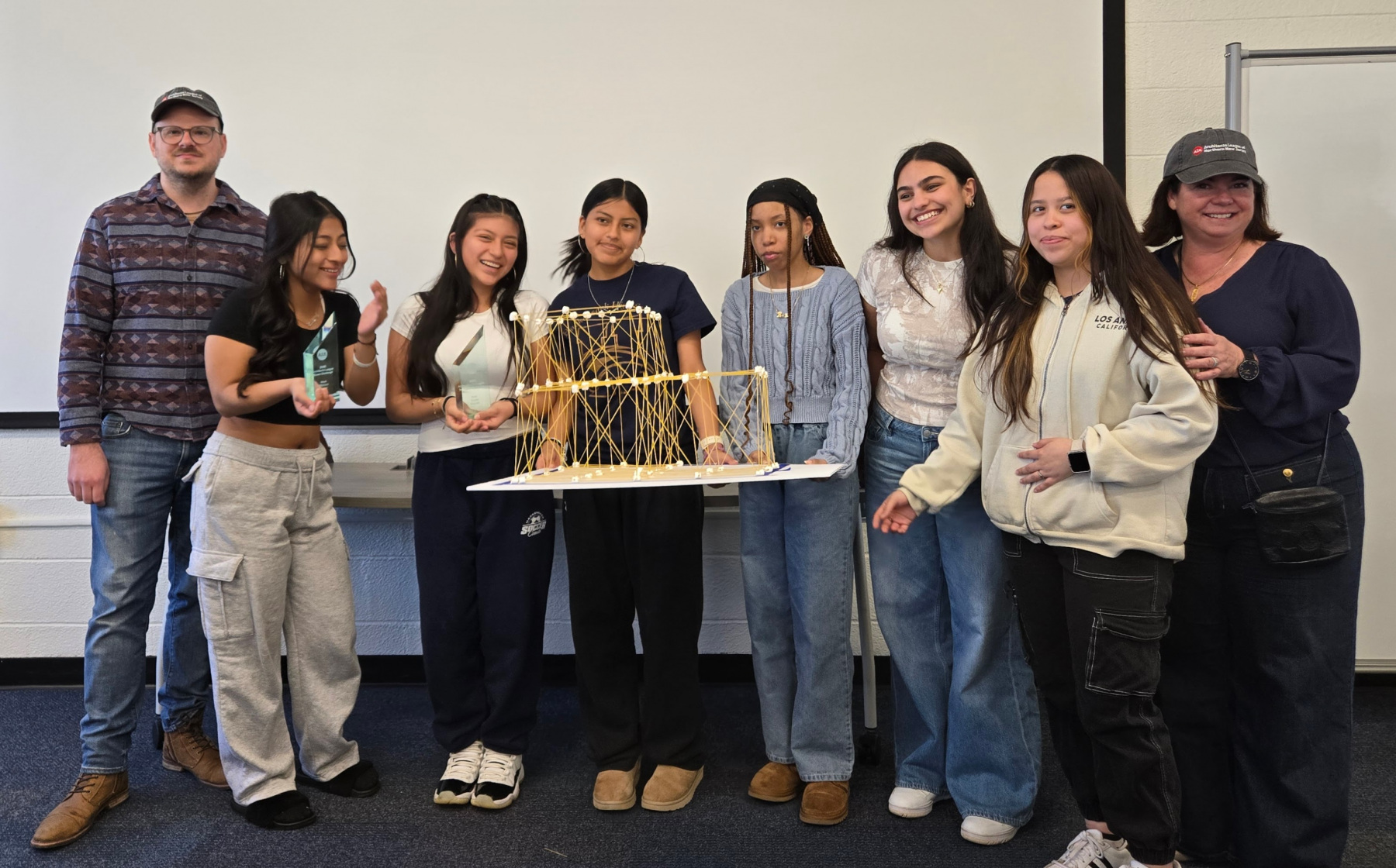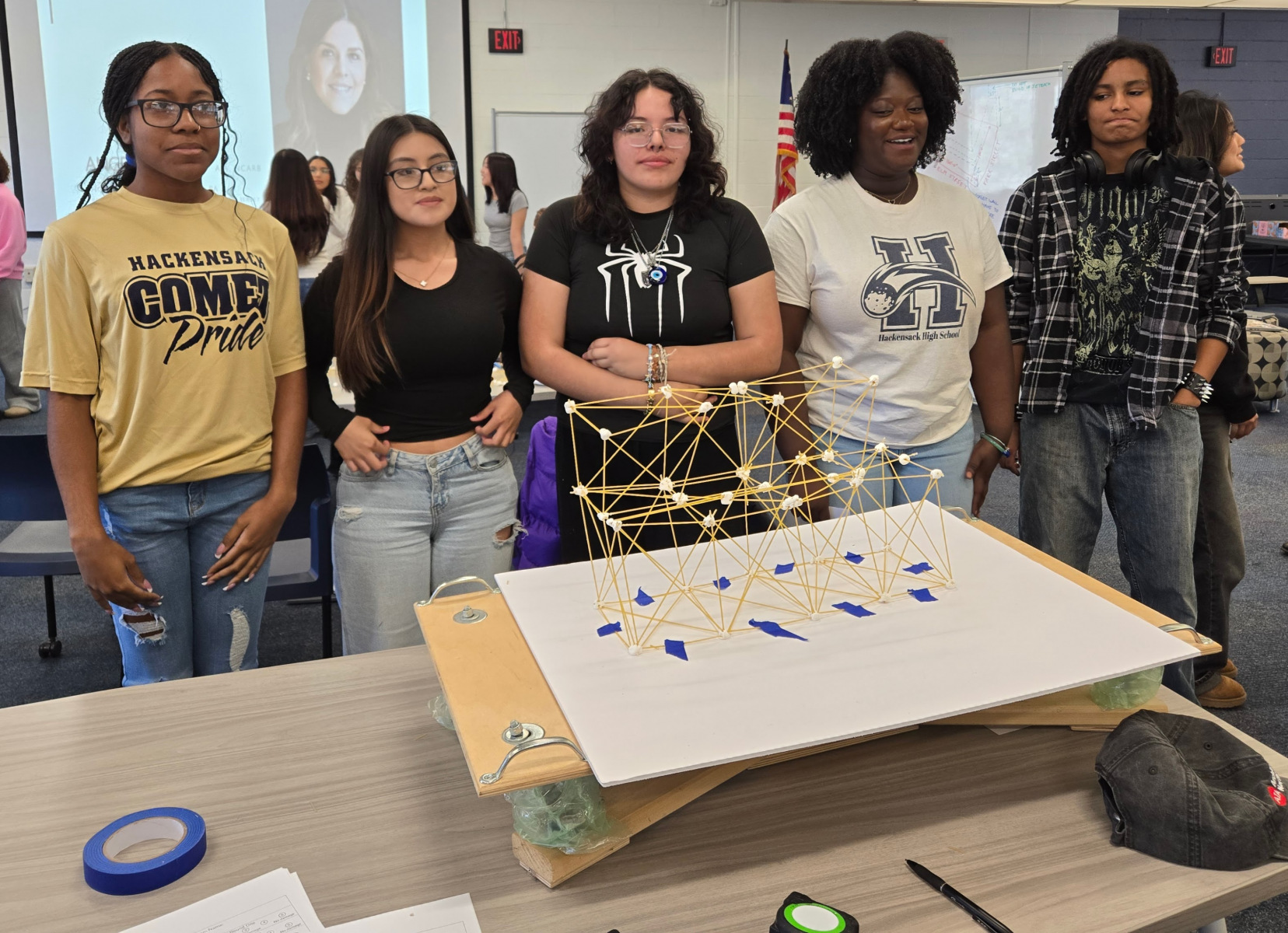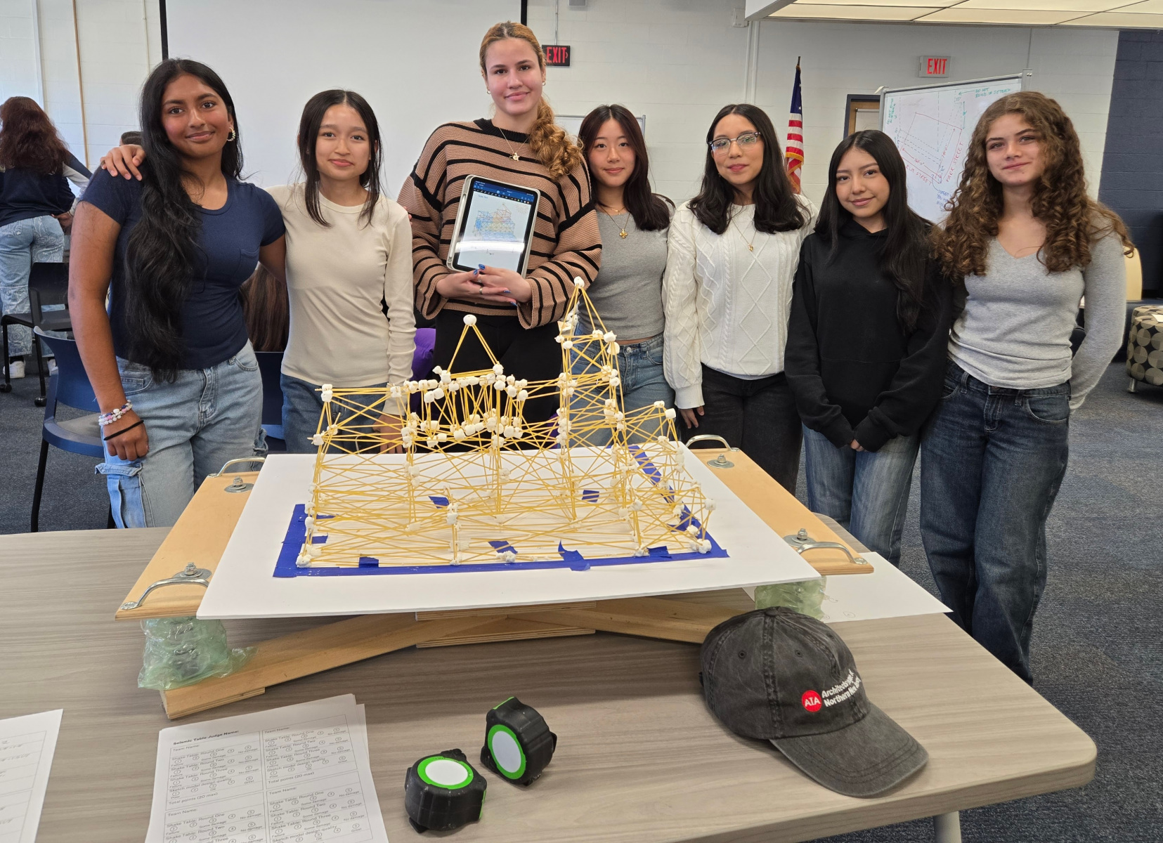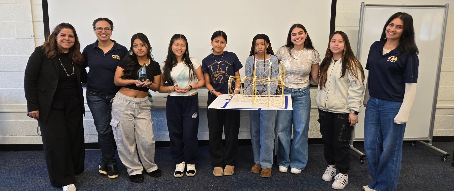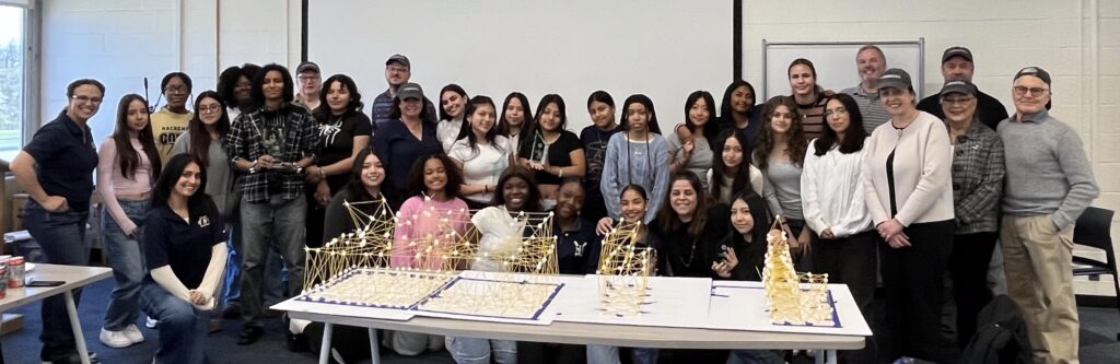 On Wednesday, April 9th, 2025 the American Institute of Architects (AIA), Architects League of Northern New Jersey (ALNNJ) members traveled to Hackensack High School to administer the Women’s STEAM Interscholastic High School Architecture Tower Challenge, a competition designed by AIA New Jersey K-12 Education co-chair, Joseph David, AIA, for teams of girls in grades 9-12. The ALNNJ received an Architecture Week grant from AIA National to sponsor this competition. AIA New Jersey Equity Chair, Stacey Ruhle Kliesch, AIA, was responsible for the planning and administration of the event.