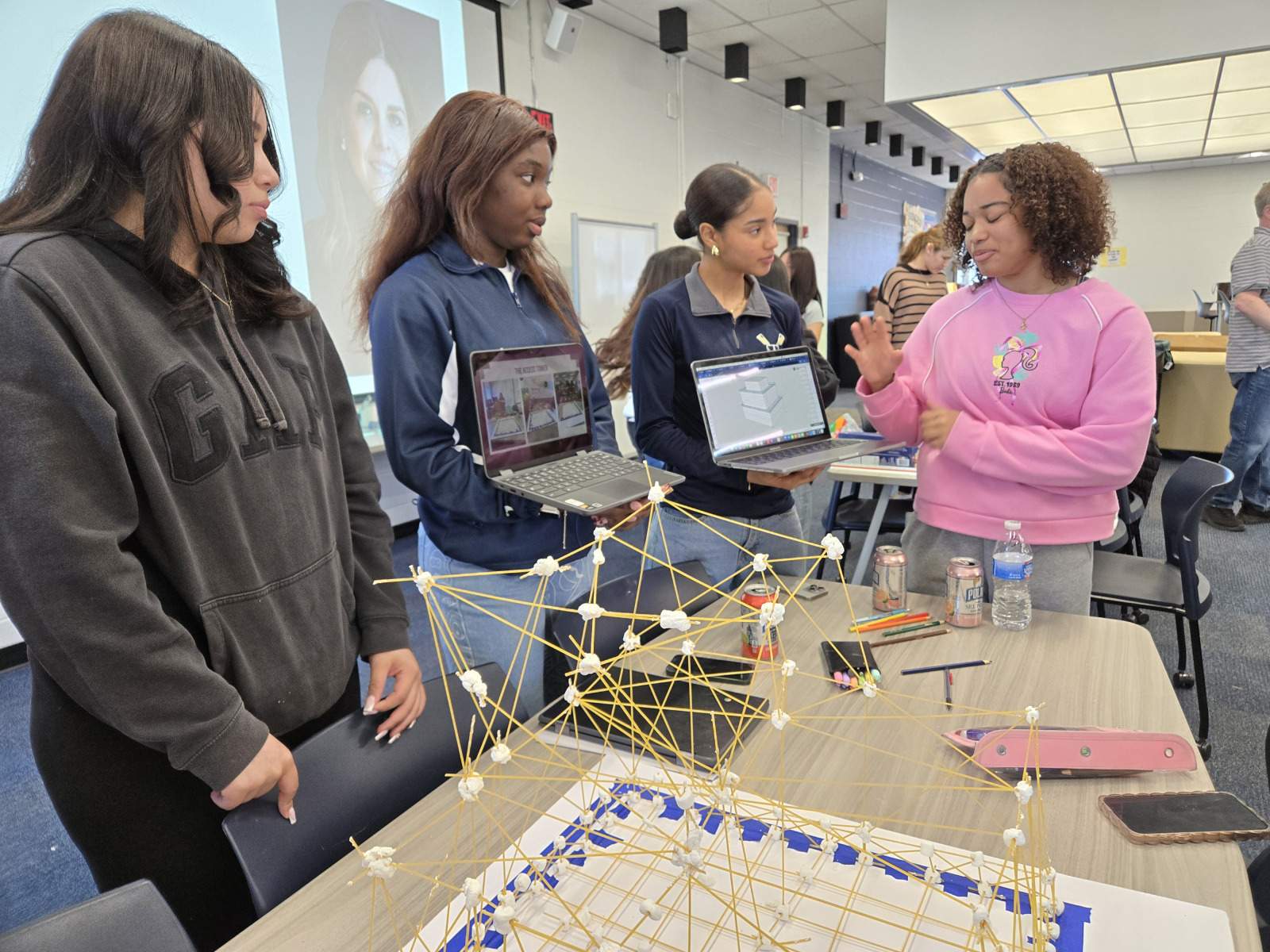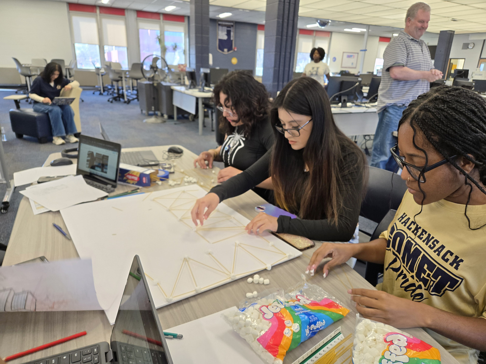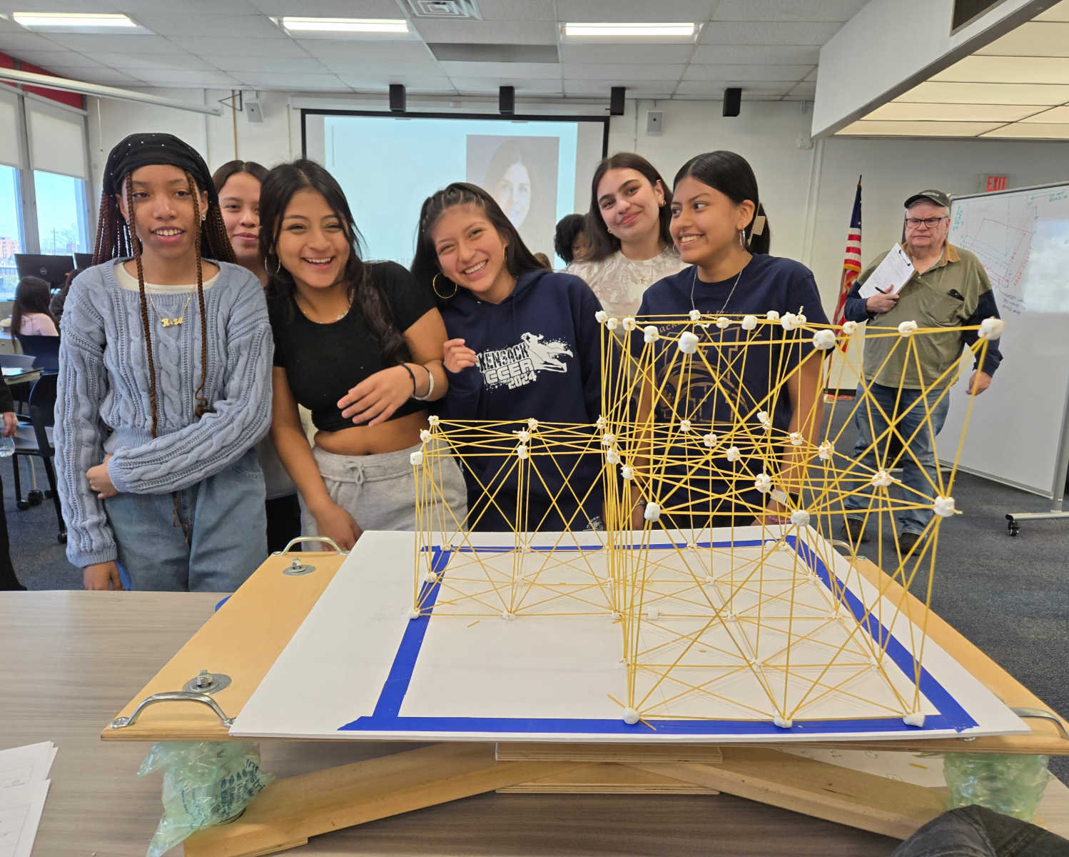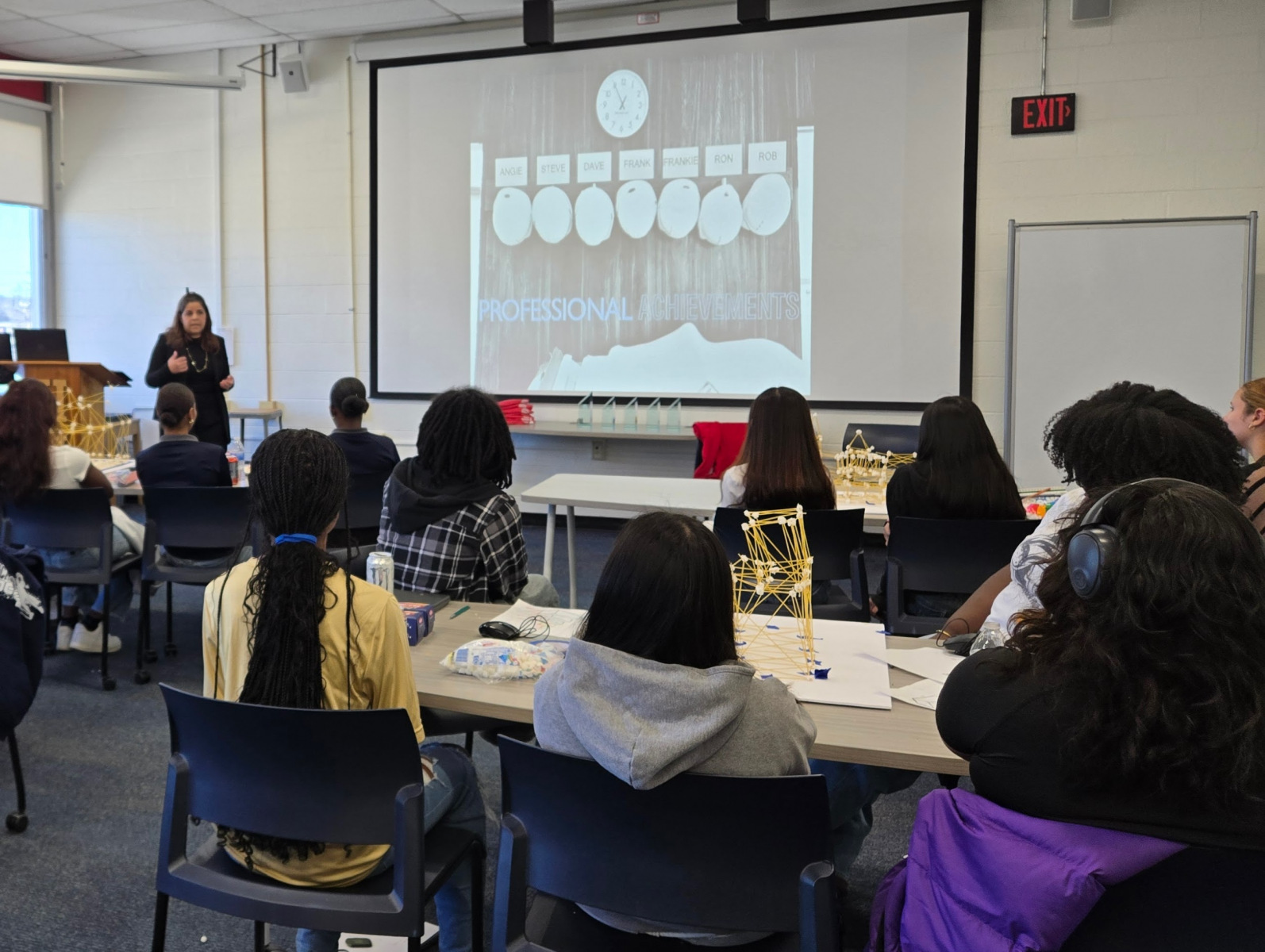 On Wednesday, April 9th, 2025 the American Institute of Architects (AIA), Architects League of Northern New Jersey (ALNNJ) members traveled to Hackensack High School to administer the Women’s STEAM Interscholastic High School Architecture Tower Challenge, a competition designed by AIA New Jersey K-12 Education co-chair, Joseph David, AIA, for teams of girls in grades 9-12. The ALNNJ received an Architecture Week grant from AIA National to sponsor this competition. AIA New Jersey Equity Chair, Stacey Ruhle Kliesch, AIA, was responsible for the planning and administration of the event.