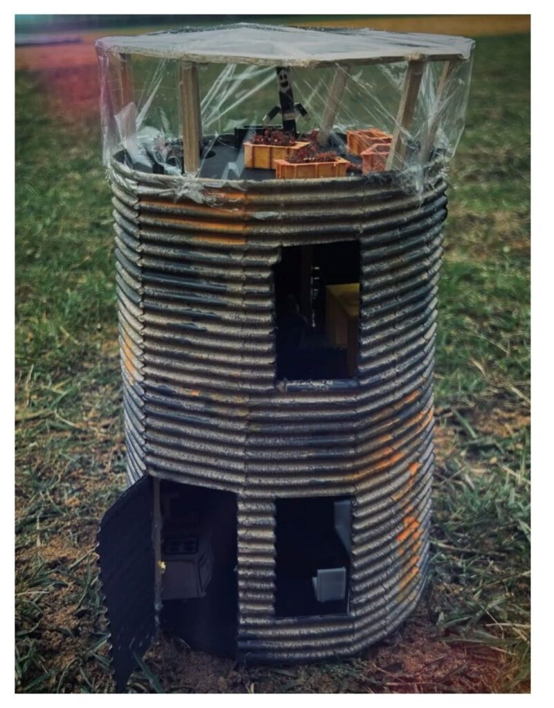 In the year 2150, a person (Elo) seeks a shelter that offers both protection and comfort in a world ruled by robots. In the city, Zero Dawn, people are unable to go outside past dawn due to lethal machines. Beyond the city’s control, an abandoned farm holds a silo that Elo has transformed into a high-tech lab, glowing with lights, as well as a glass dome garden that provides fresh air, food, and light, offering a safe haven from the polluted skies.