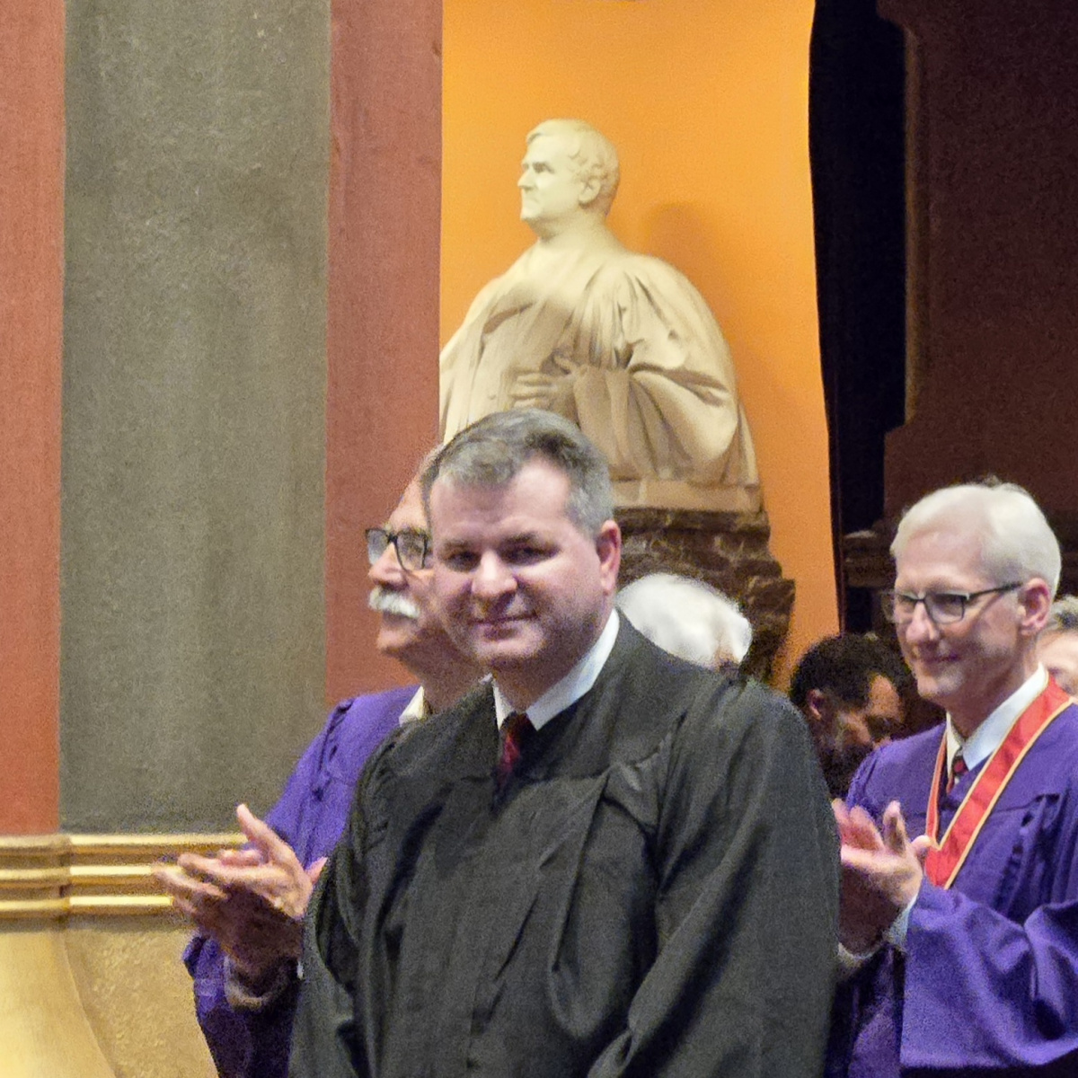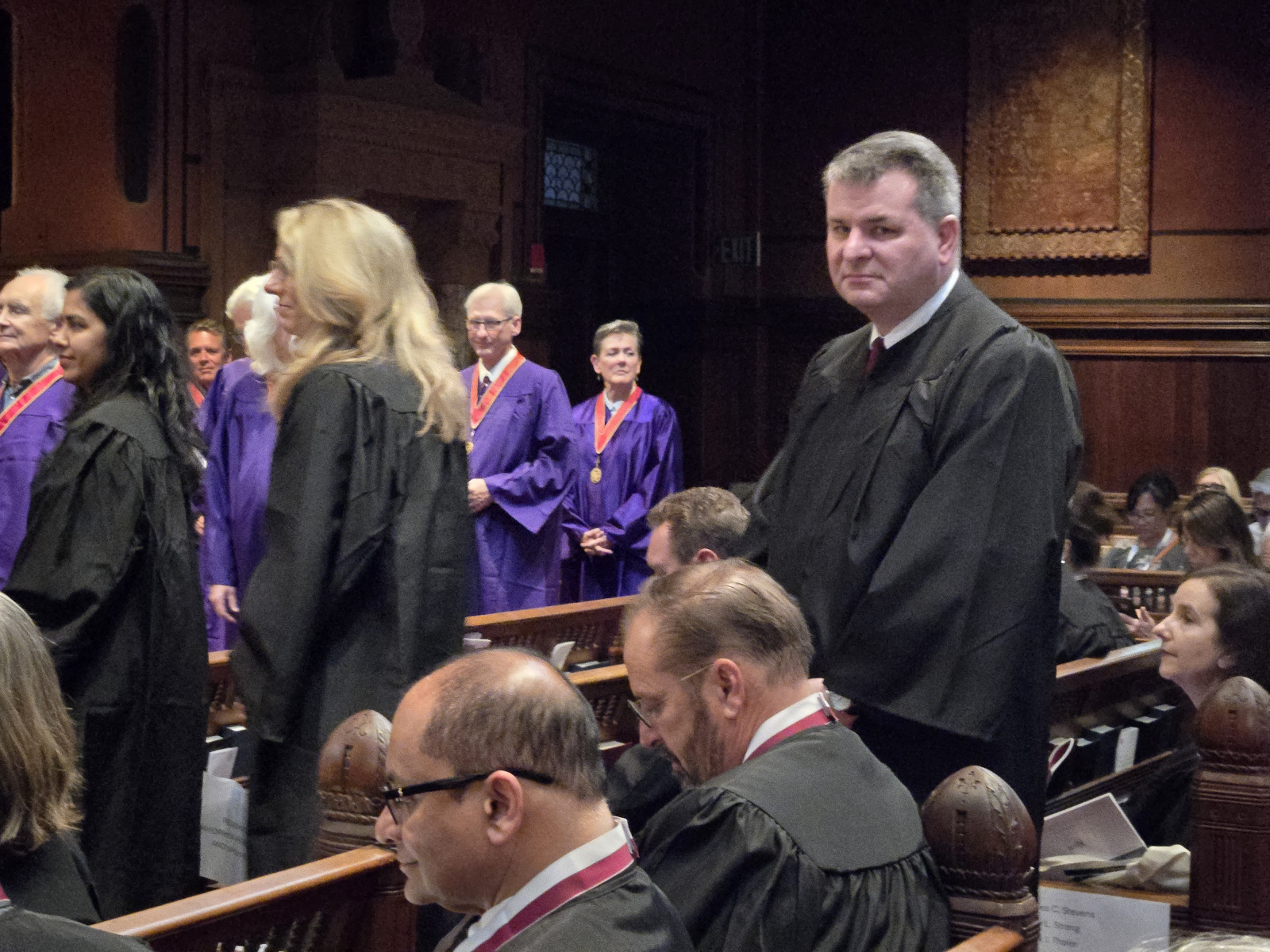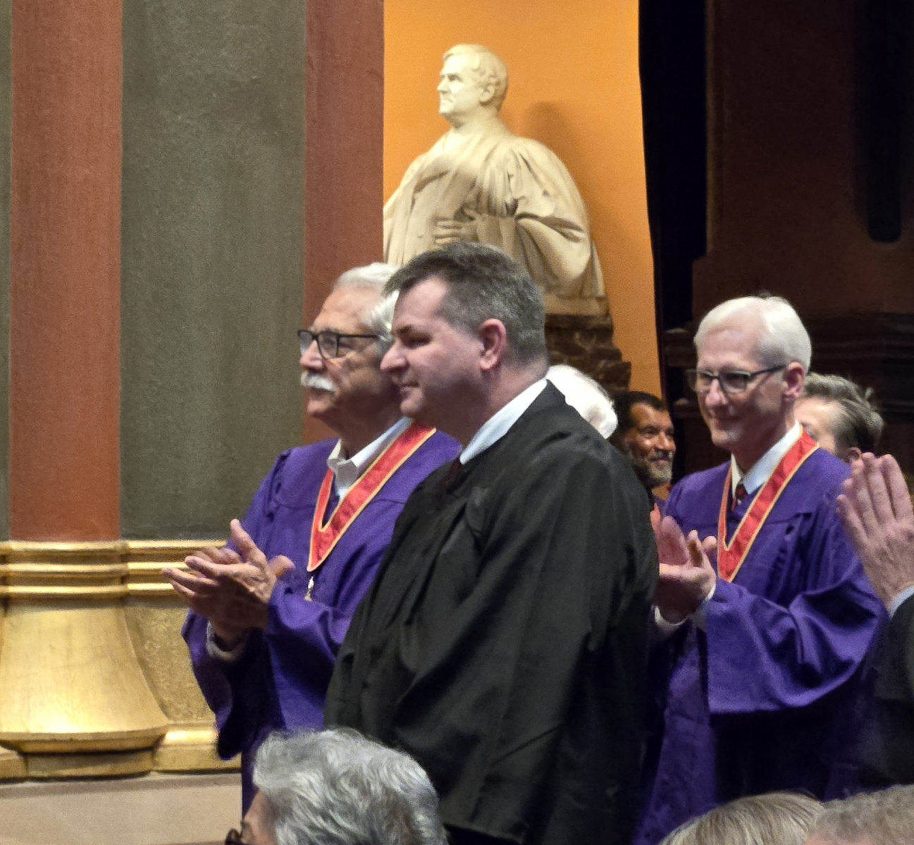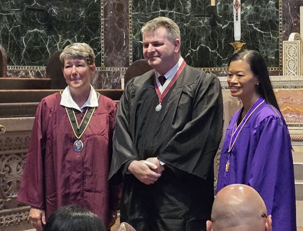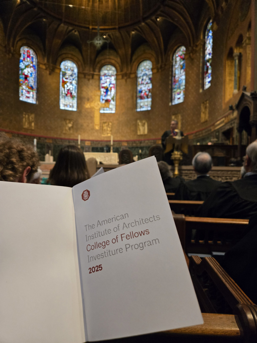 Michael Hanrahan, FAIA, with AIA Chancellor of the College of Fellows, Katherine Lee Schwennsen, FAIA, and AIA National President Evelyn Lee, FAIA, being elevated in Boston’s Trinity Church.
