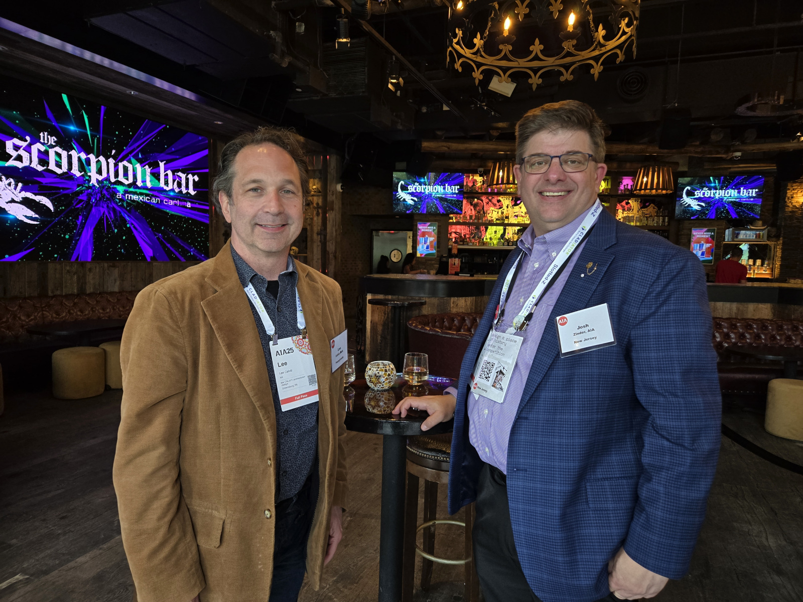 After the College of Fellows (COF) Investiture Ceremony held on June 5th, 2025, in Boston’s Trinity Church, AIA New Jersey members gathered with colleagues from AIA NY and AIA PA for a tri-state reception at Scorpion Boston to celebrate their new fellows and Michael’s noteworthy achievement!  AIA NJ President Andrew Thompson, AIA, NOMAC, introduced Michael to the guests at the event and offered his genuine and heartfelt congratulations.