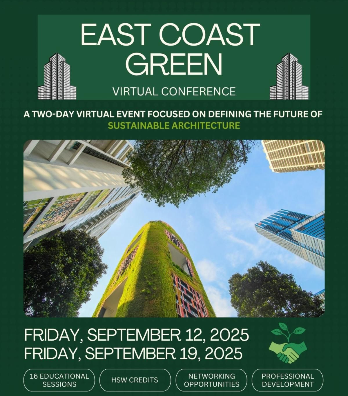 Join the AIA-NJ Committee on the Environment at the AIA NJ East Coast Green Virtual Conference to shape the future of architecture and sustainability. This premier event gathers industry leaders, architects, and innovators to explore cutting-edge solutions and sustainable practices. Don’t miss your chance to be part of this transformative experience. Register now to engage with key experts and gain insights into the latest advancements in sustainable design.