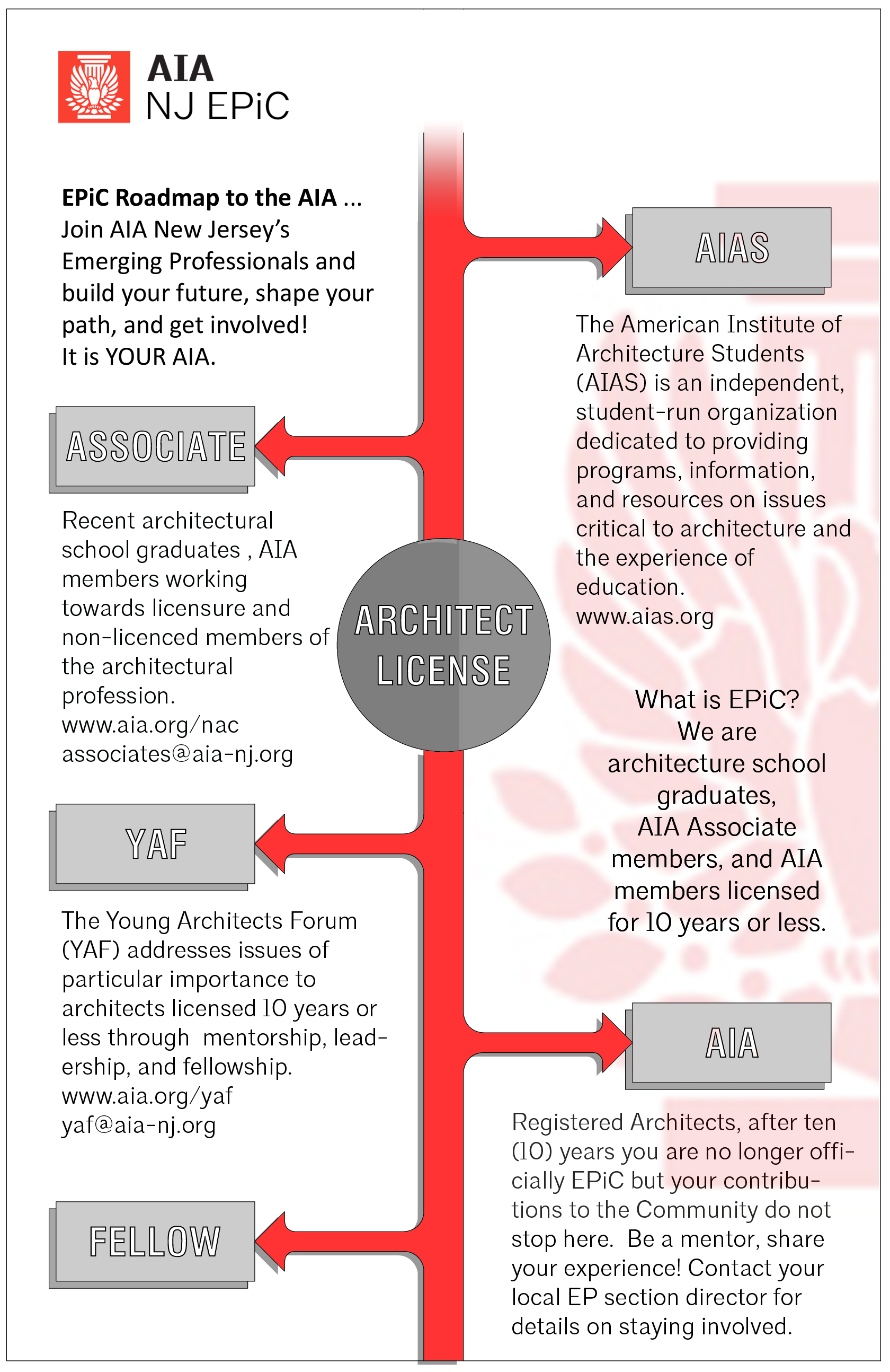 Questions about the path through the AIA? Unsure of all the abbreviations (AXP, IDP, ARE, NAC, YAF)? Curious about all the different groups you could be a part of? Check out EPiC’s Guidebook to answer questions like these or others that may arise during your professional career.