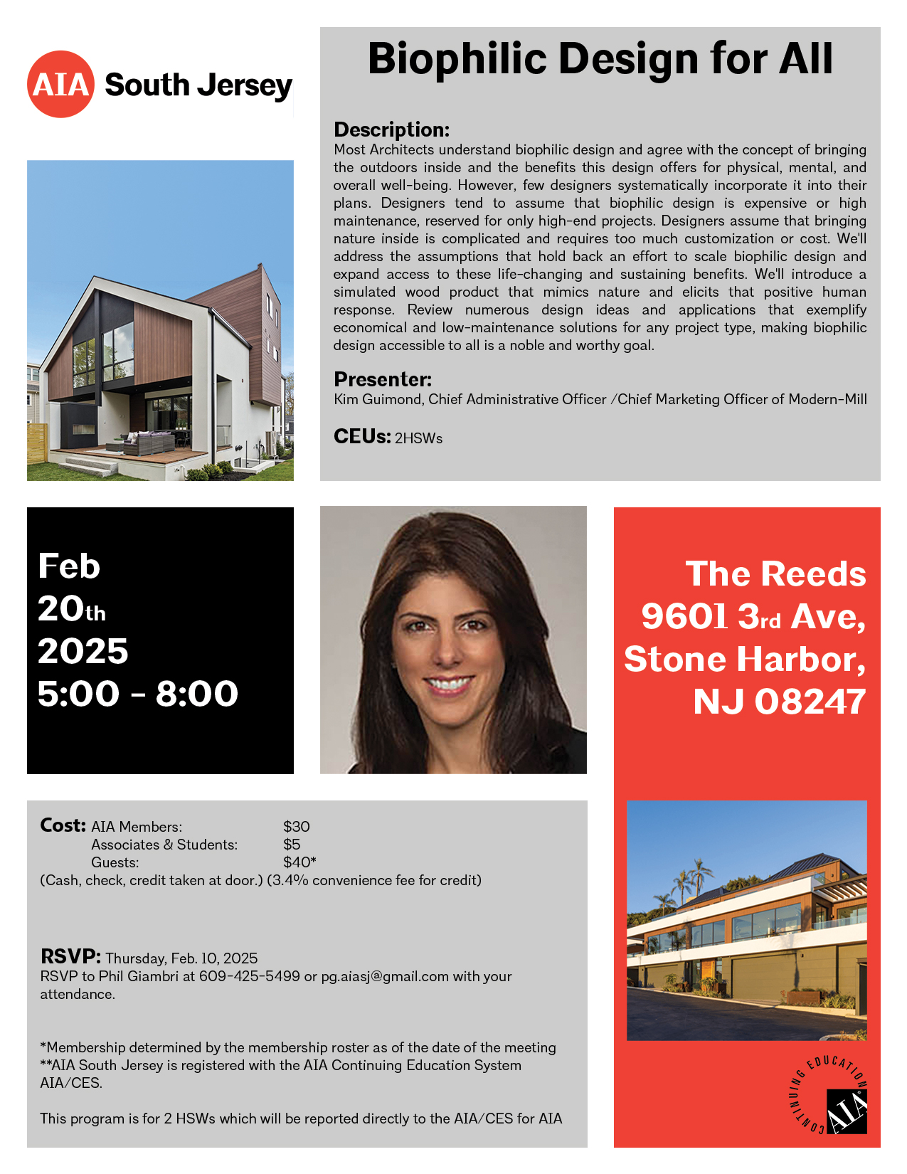 AIA South Jersey is excited to invite you to their February 20th memberhsip meeting at The Reeds, in Stone Harbor, NJ from 5-8pm.