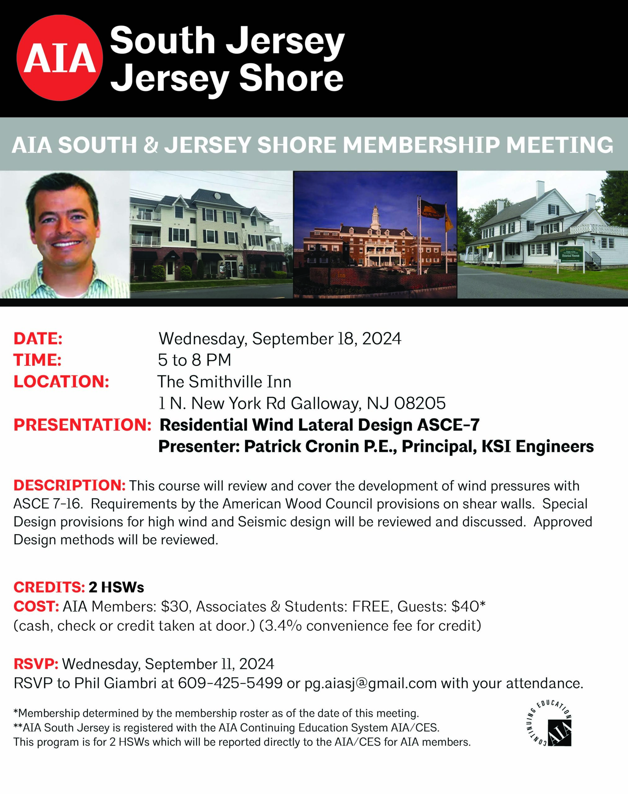 - *AIA South Jersey is registered with the AIA Continuing Education System AIA/CES.