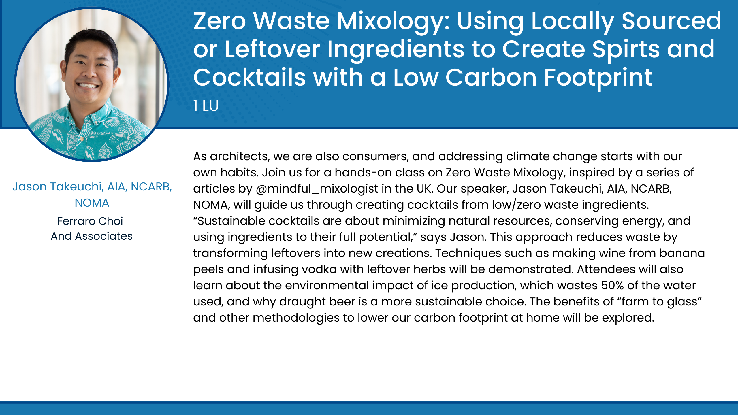 5PM EST: Zero Waste Mixology: Using Locally Sourced or Leftover Ingredients to Create Spirts and Cocktails with a Low Carbon Footprint